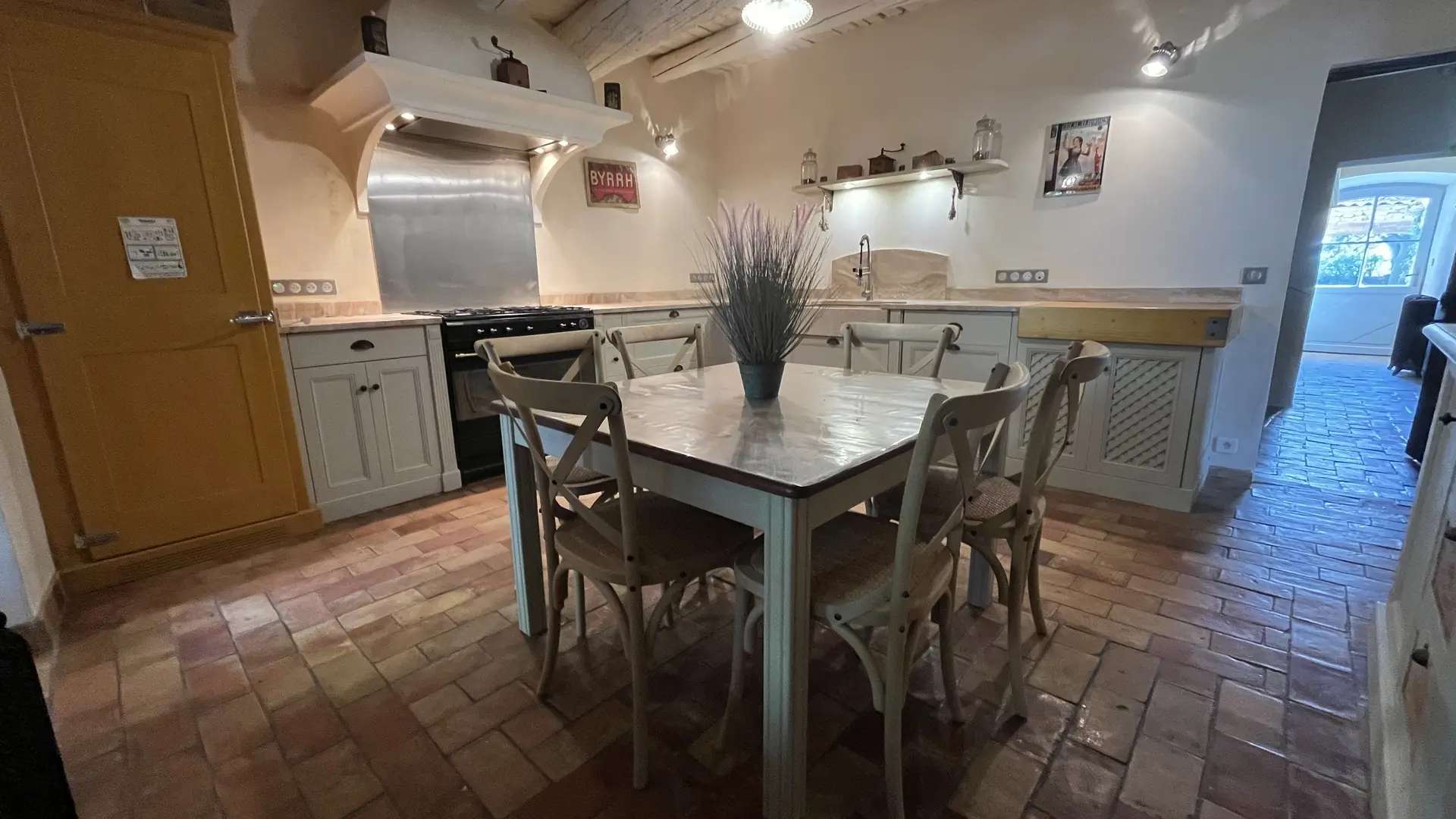 - a large, fully equipped kitchen, convivial and open to the dining room,