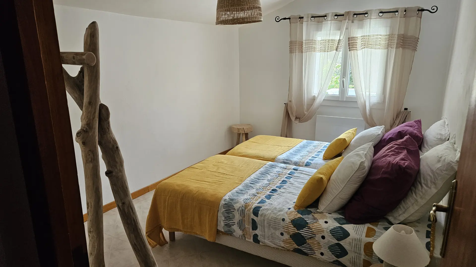 This character house nested in the valley of Toulourenc is located in a peaceful hamlet with a beautiful view to the picturesque village of Brantes and the northern slope of Mont Ventoux. Recently renovated it can accommodate 5 persons in 85 m² all on 1200 m² of land maintained, fenced and wooded. Many possibilities for hiking and cycling nearby, maps and topo-guides in the gîte.