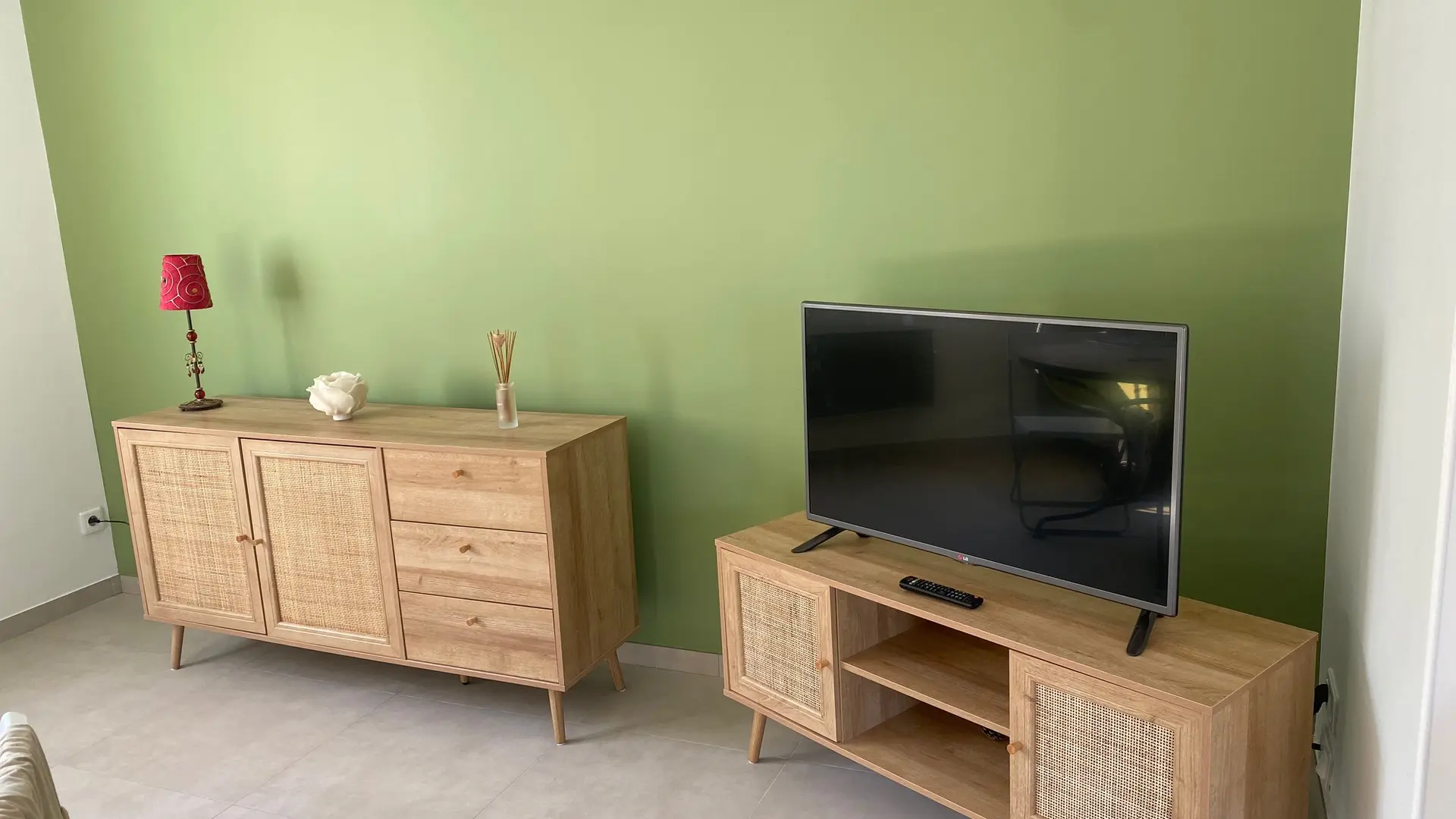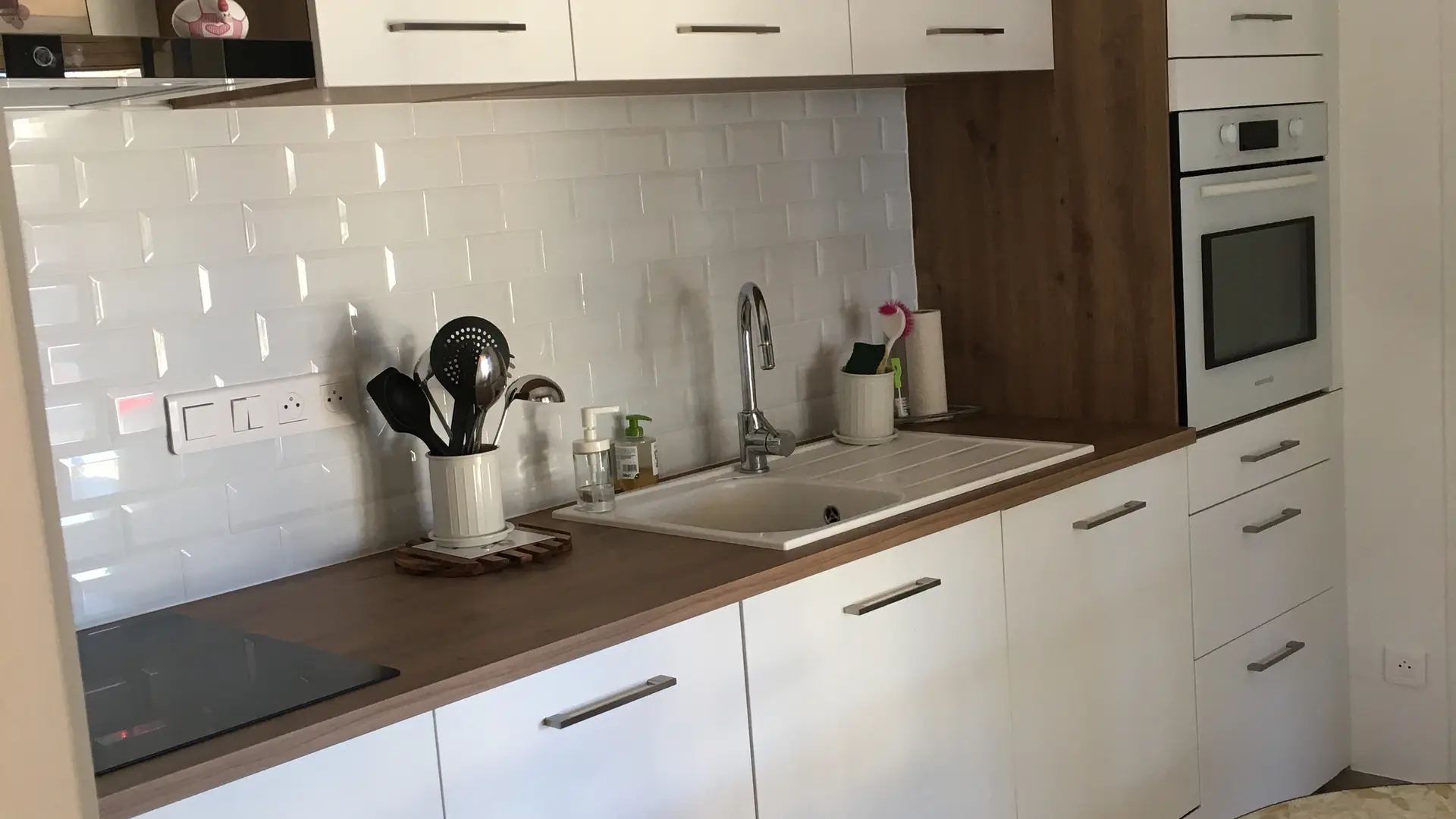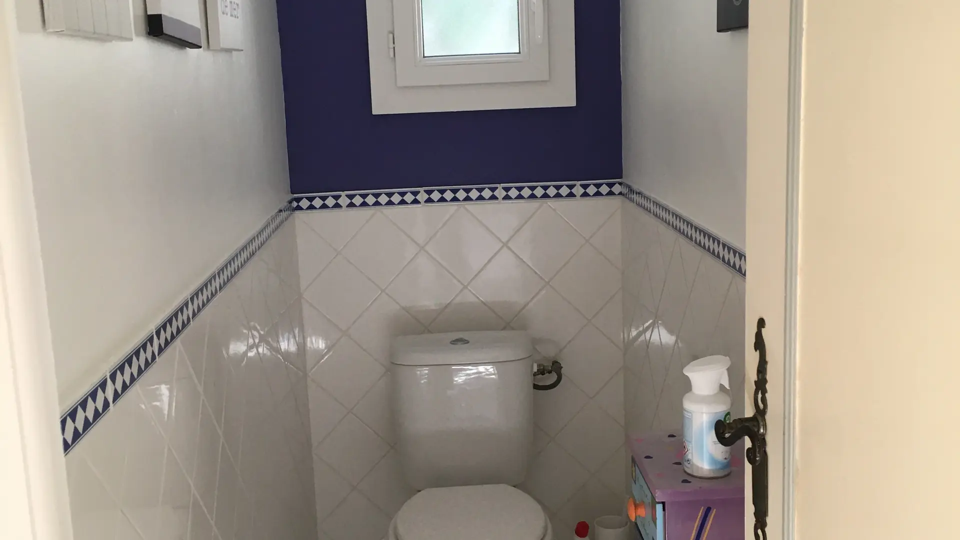 Shower room, separate toilet, fully equipped kitchen opening onto sheltered terrace,