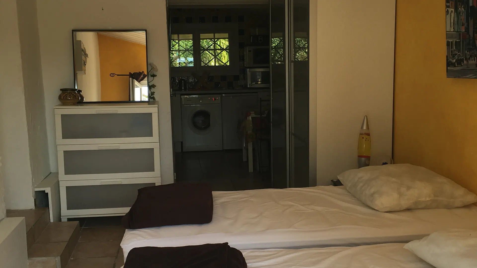 Sleeps: 1 140cm bed, 1 160cm bed, 2 90cm beds in studio.