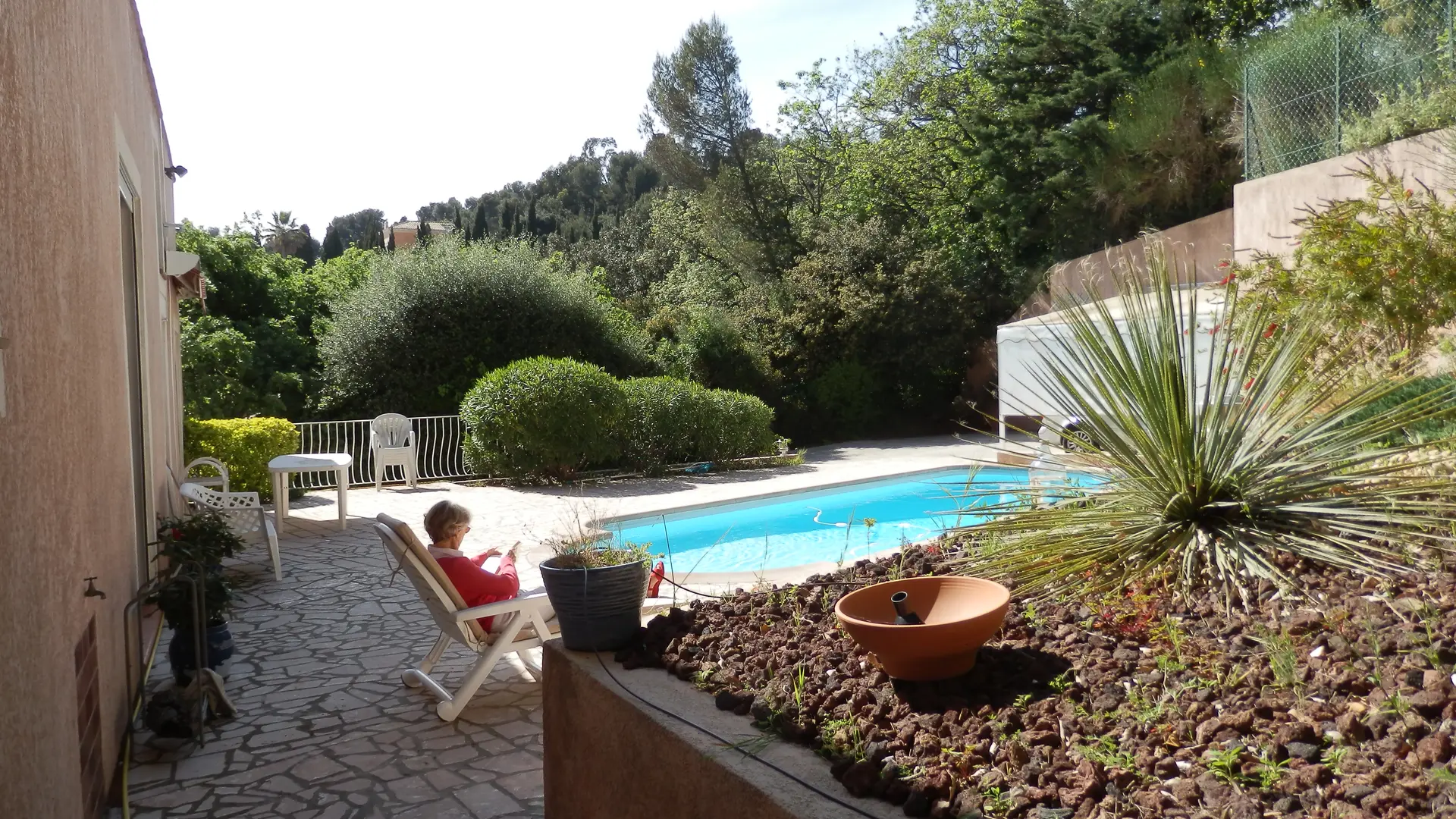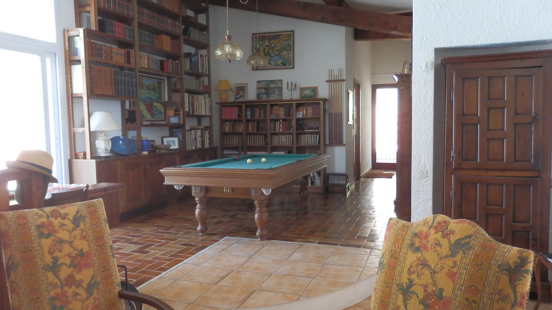 Dominant view of the nearby sea from all rooms (80m) 80% air-conditioned villa, 2 triple bedrooms, one double bedroom, 2 bathrooms, 2 separate WCs, very large living room with French billiards table, secure private outdoor swimming pool, heated in season.