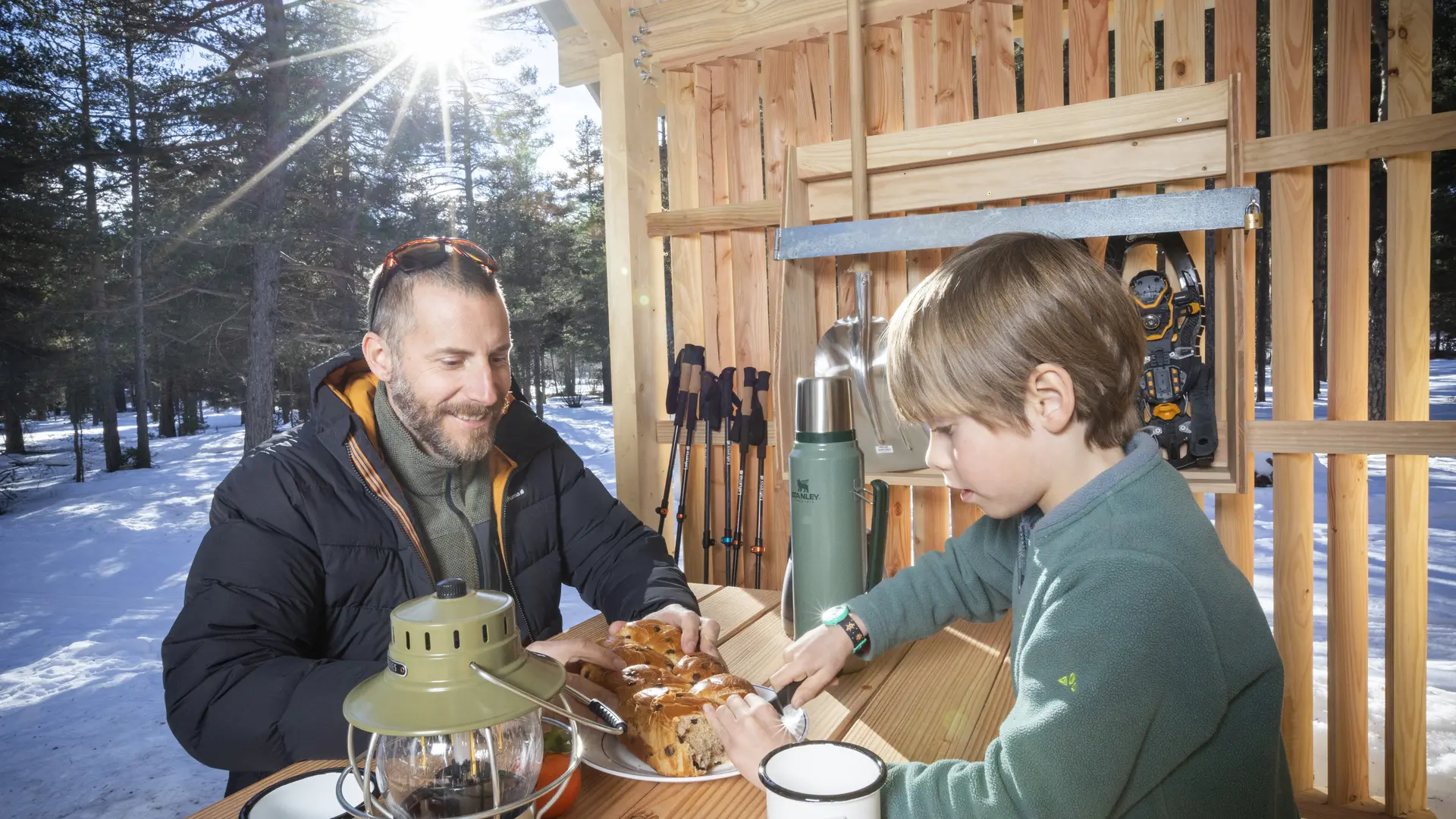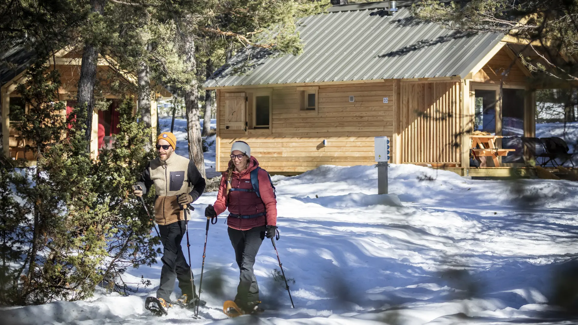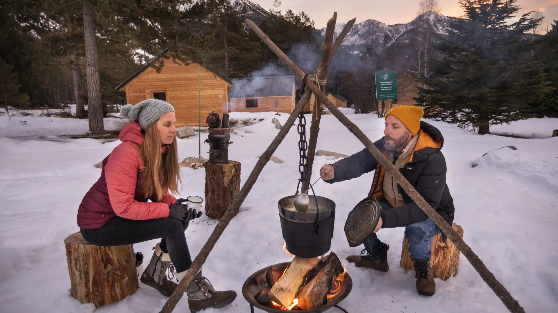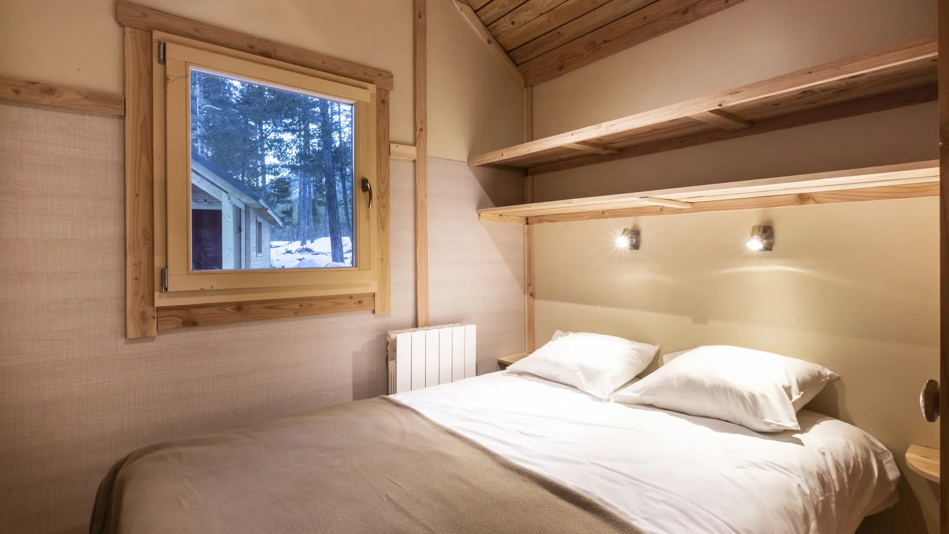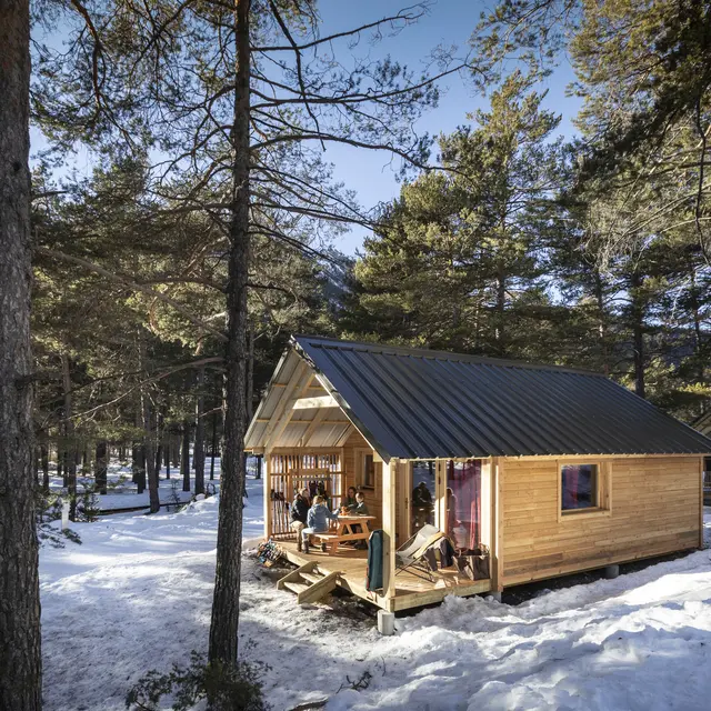Discover Chalet Montana Vista at Huttopia La Clarée: a warm, spacious cocoon for 6 people, with mezzanine, wood-burning stove and large terrace for unique moments in the heart of the Alps.