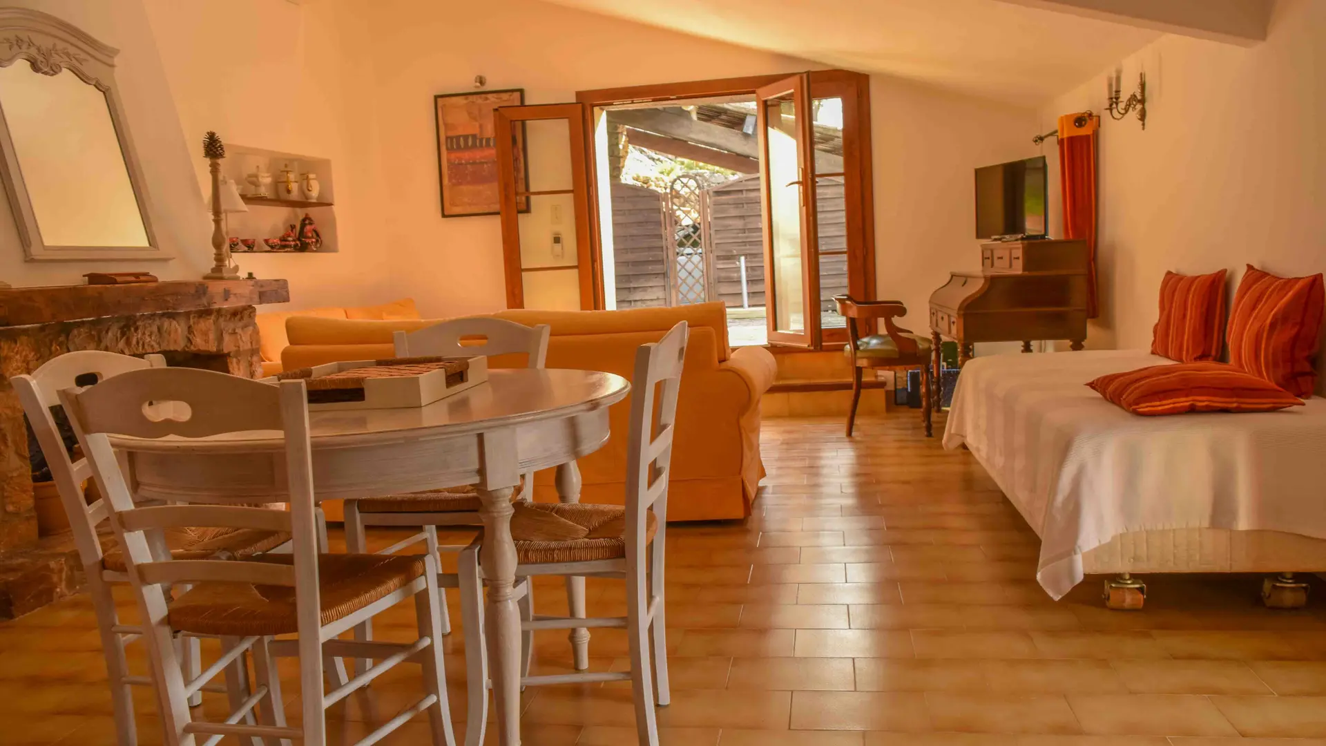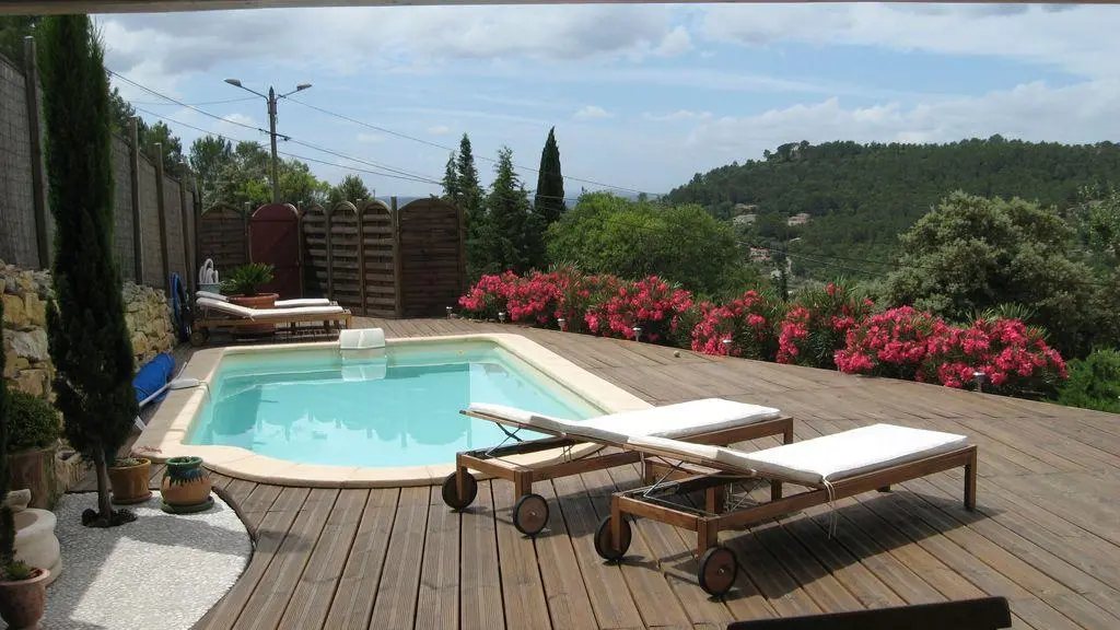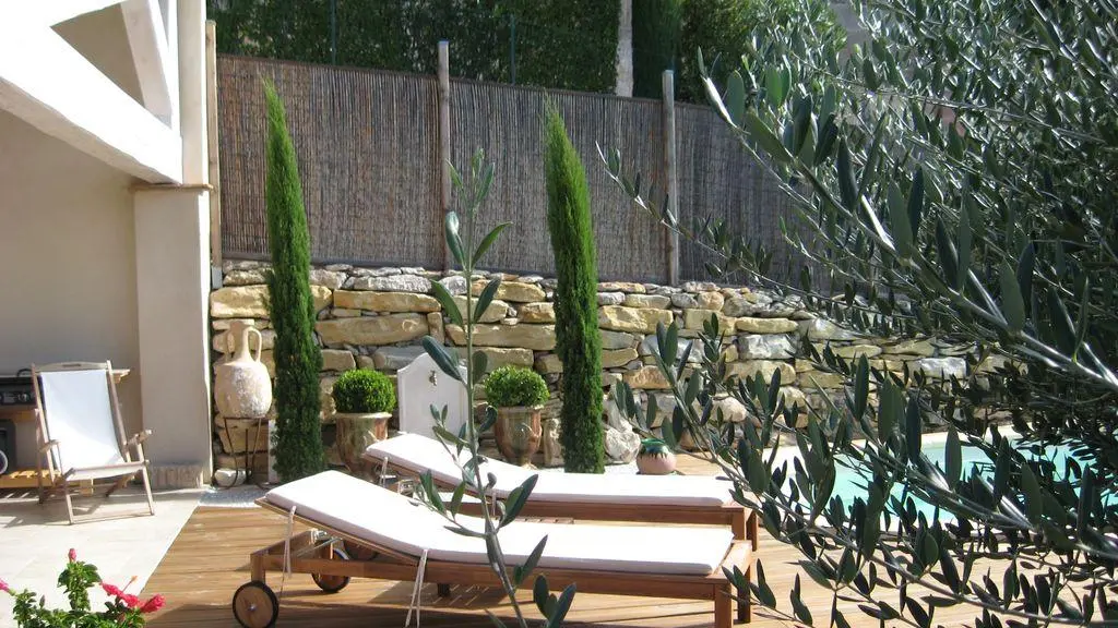 Neighboring owners. Terrace and garden 80 m2, car park, swimming pool to share with owners.