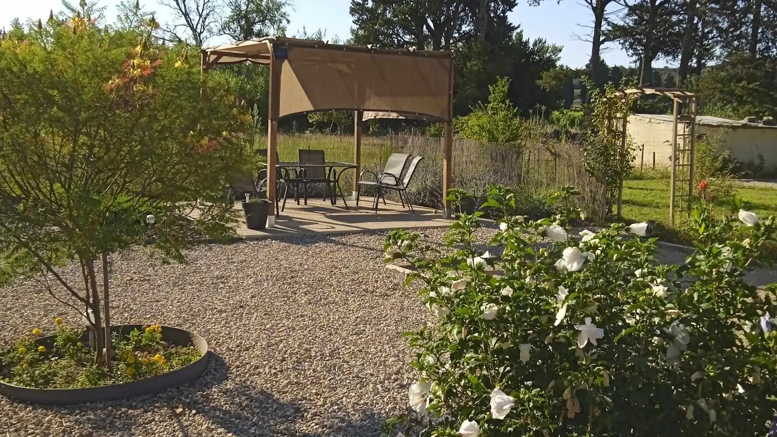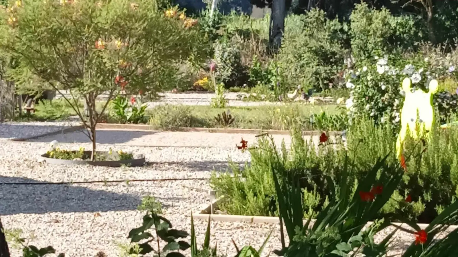 Outside, the garden has tables, chairs and benches, where you can enjoy the sunshine or the shade to the sound of the song of the cicadas.