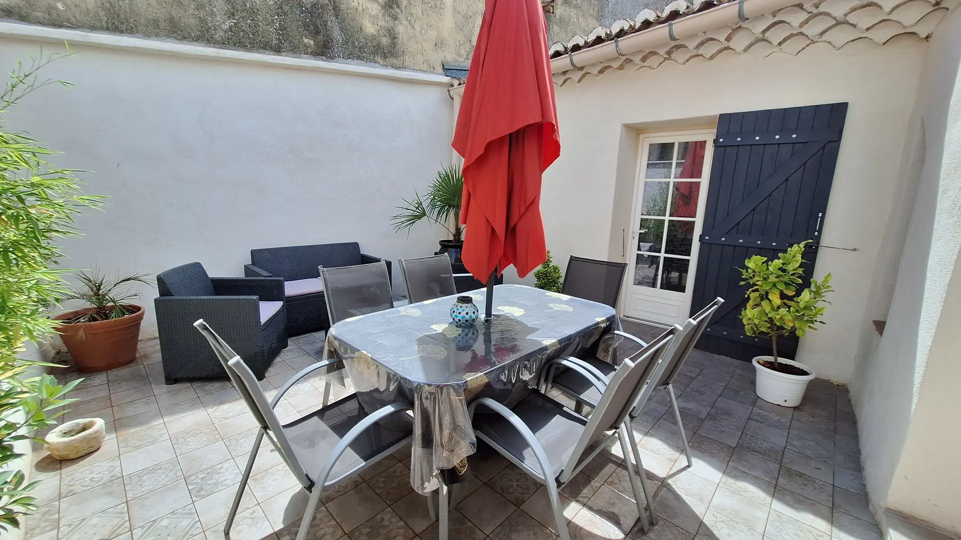 - 2nd floor: Two bedrooms, bathroom with WC, summer kitchen opening onto a pretty terrace not overlooked with barbecue and jacuzzi available under conditions. .
