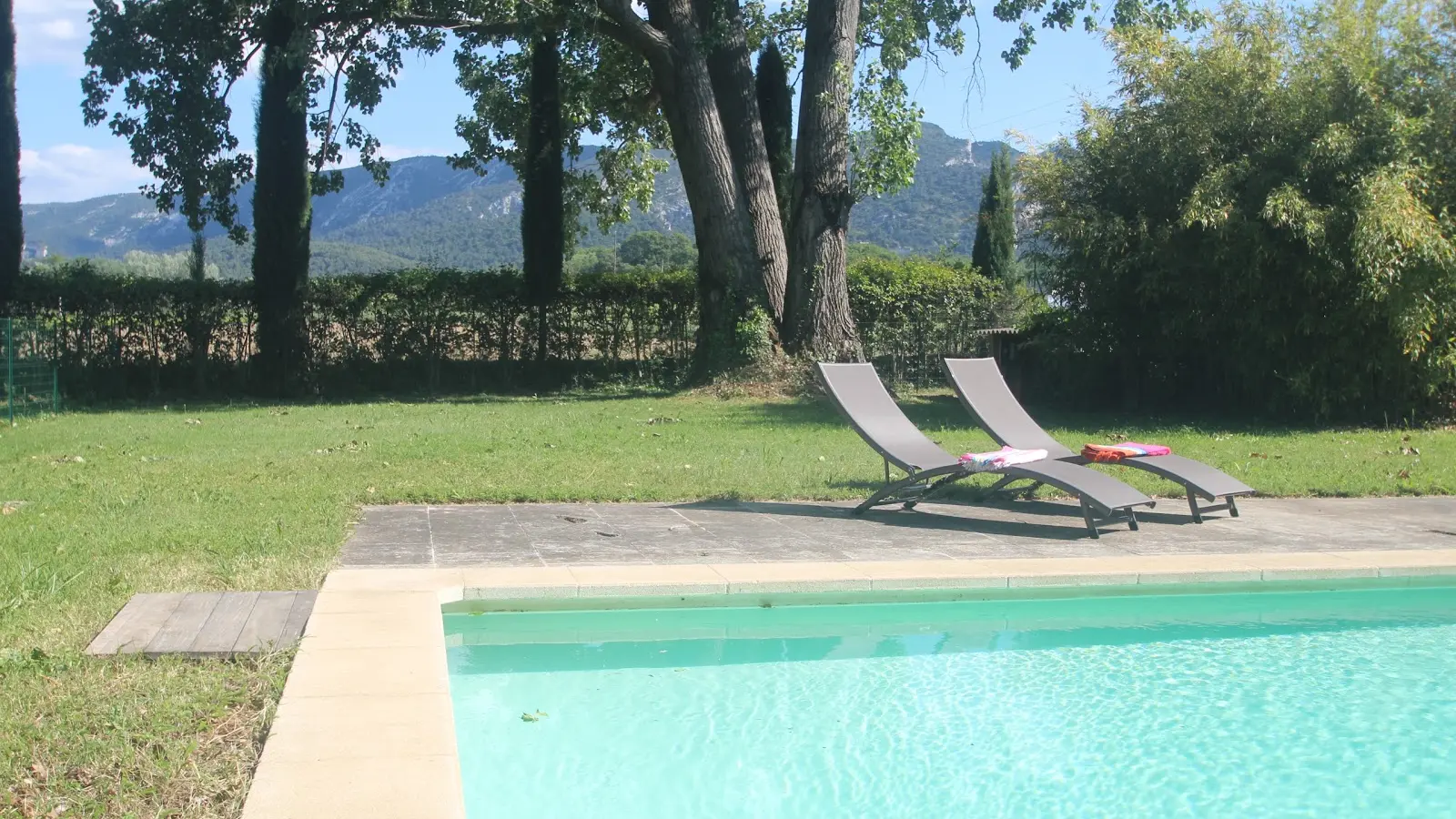 Les Guillaume Rey is the quintessential Provencal bastide, with its walled courtyard, well and Mediterranean vegetation. It is entirely surrounded by vineyards and olive or truffle oak groves, and you can walk to the swimming pool, a beautiful 6x12m pool set in a large lawn planted with trees at the end of the path between the vines, 150 meters away; it is shared with guests from the other 2 gîtes, La Bastide and La Fugagne, and with the owners when we are present.
