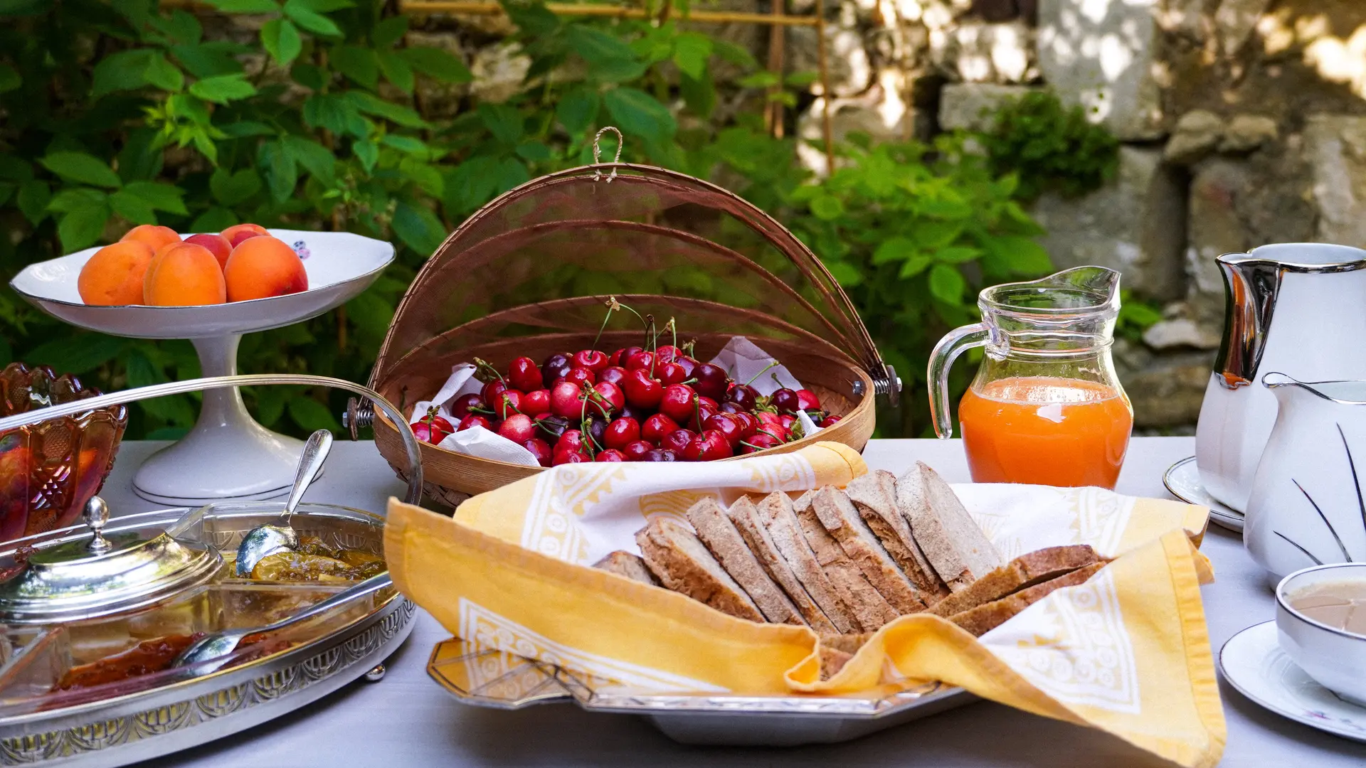 Depending on the season, breakfast is served in the garden or one of the lounges. I use fresh local and organic produce, as well as homemade jams and pastries.