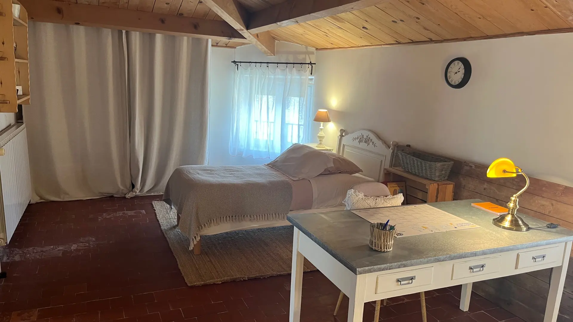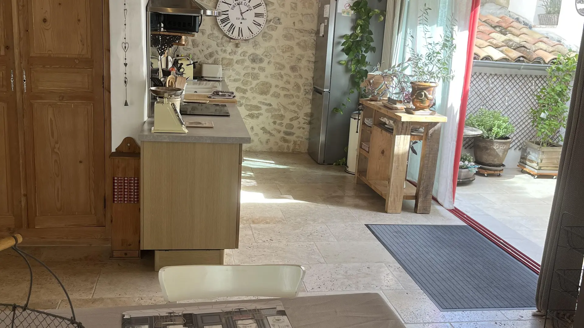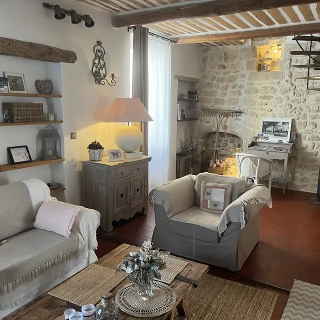 Nestled in the heart of the village of Céreste-en-Luberon, charming village house entirely renovated and tastefully decorated. Beautiful living room opening onto a courtyard. Large bedroom and shower room on 1st floor. Air-conditioned and well-equipped. Bike room.