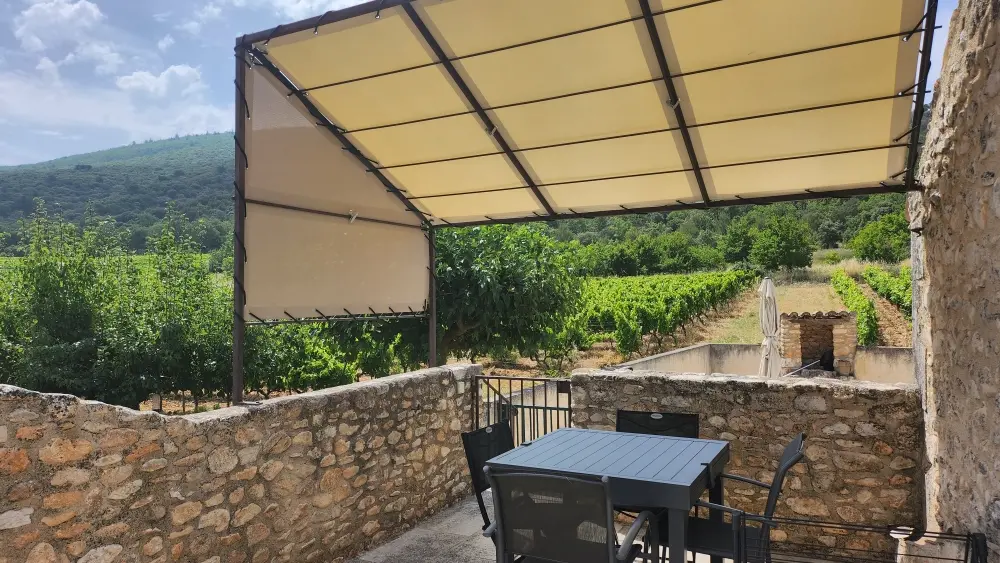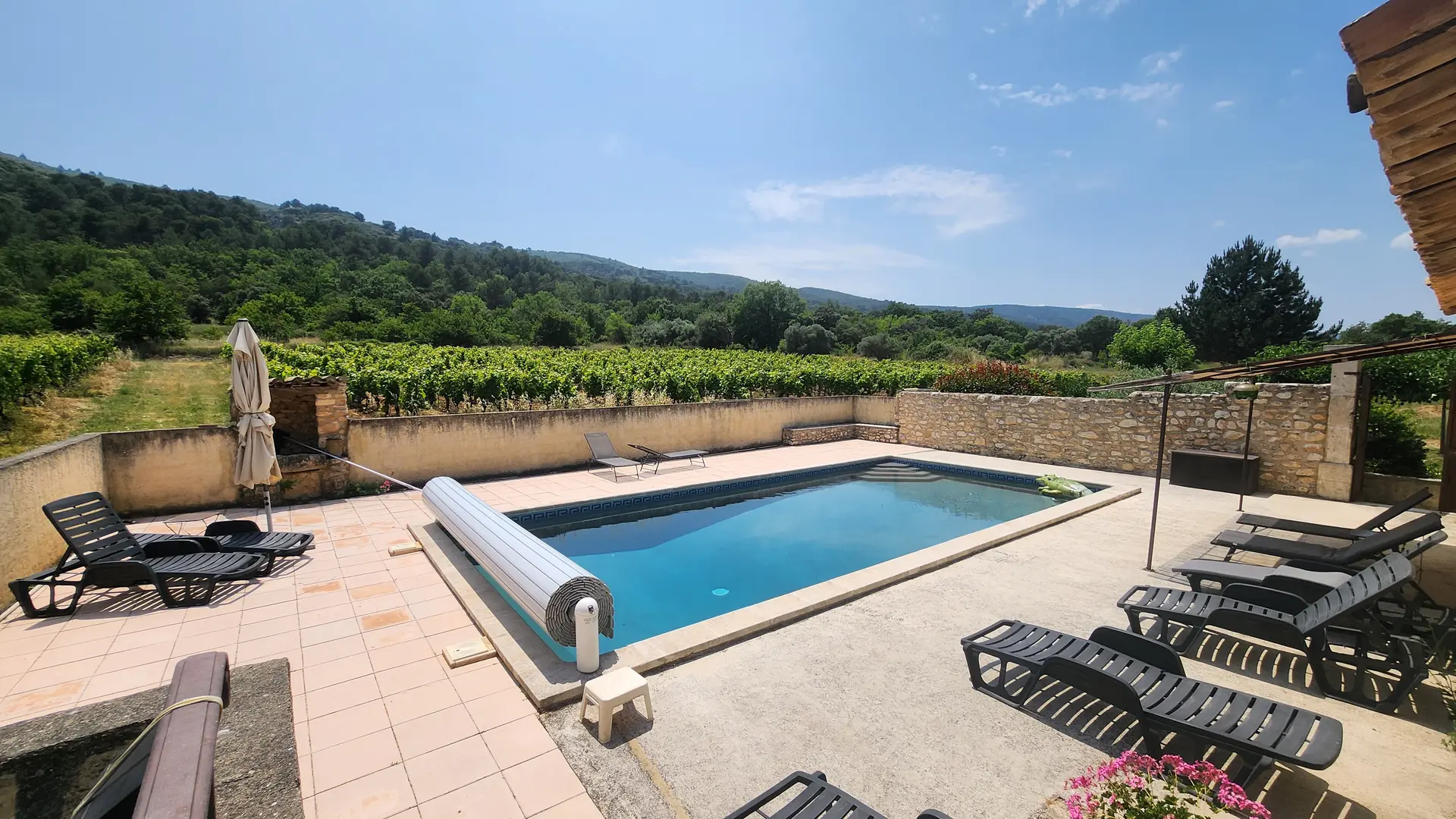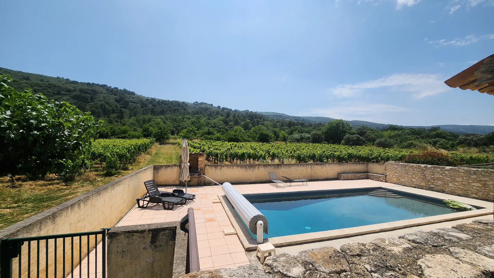 Ideal for nature lovers and hikers, (GR at 200m) La Fenière, large bright room of 50 m², comfortable, with a shaded terrace overlooking the vineyard of the property and the Luberon. Quite independent without screw to screw, it is part of the mas of your wine-growing hosts and where a cottage for 4 people occupies the west wing. Everyone has privacy, quiet. The 10x5 swimming pool is shared. The most: air conditioning, Wi-Fi, barbecue, garden furniture....