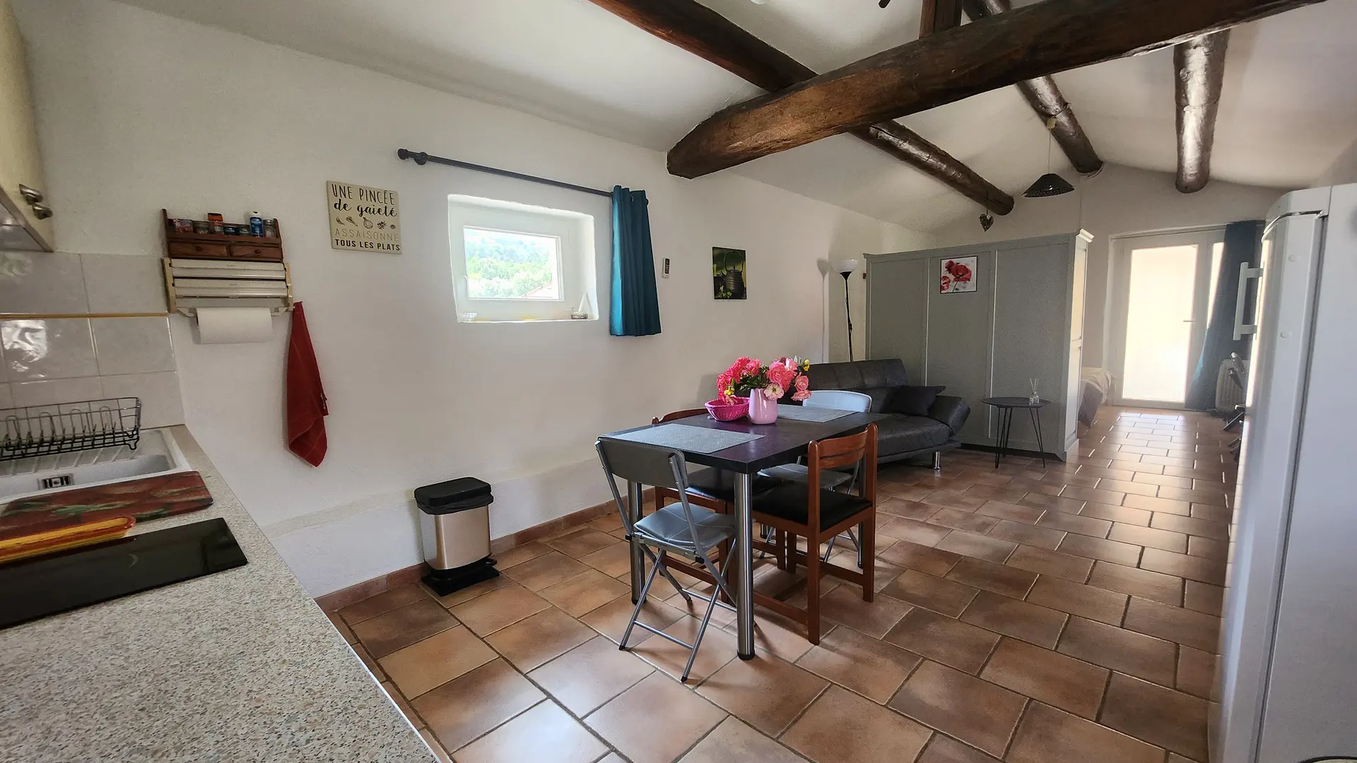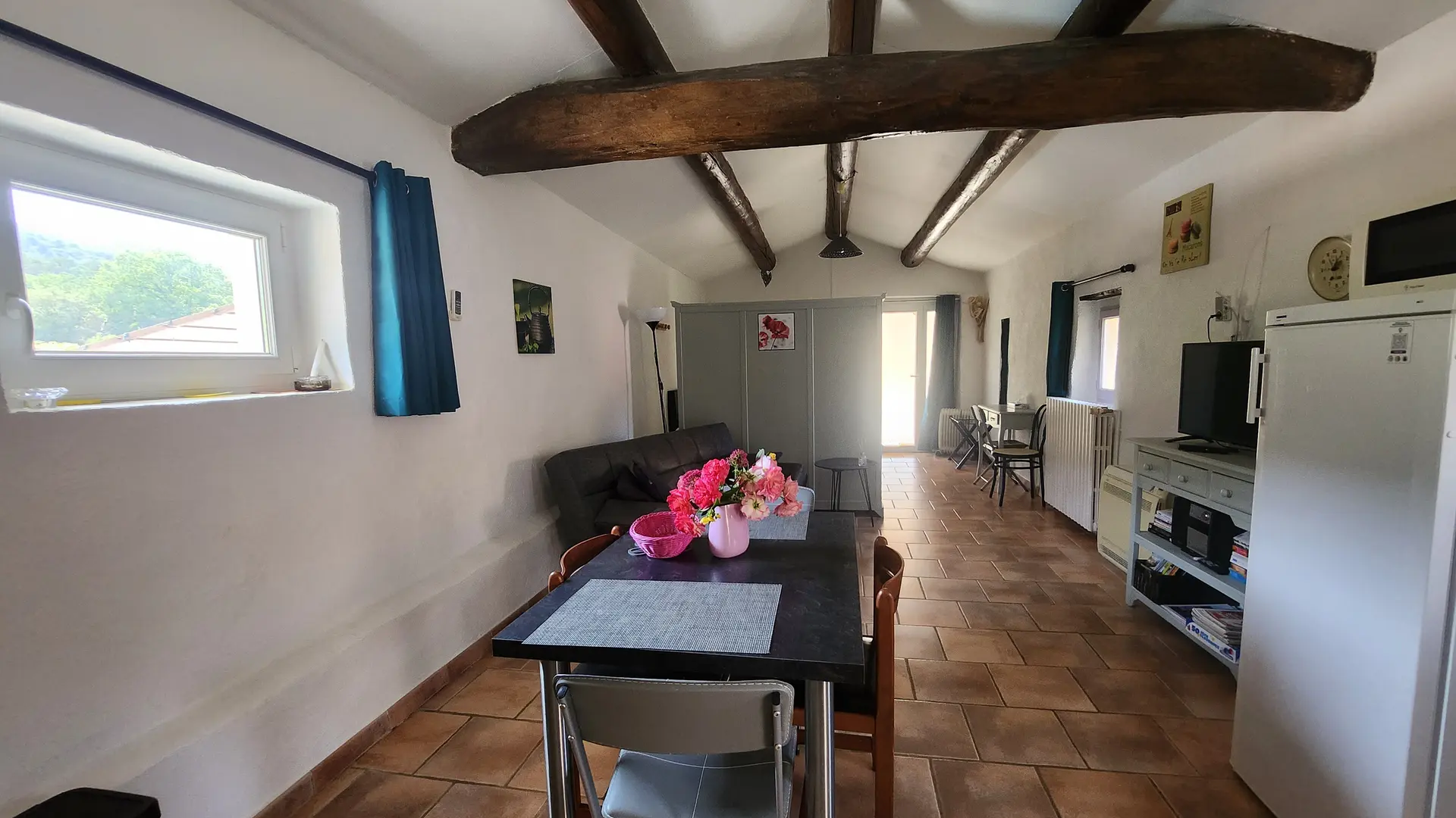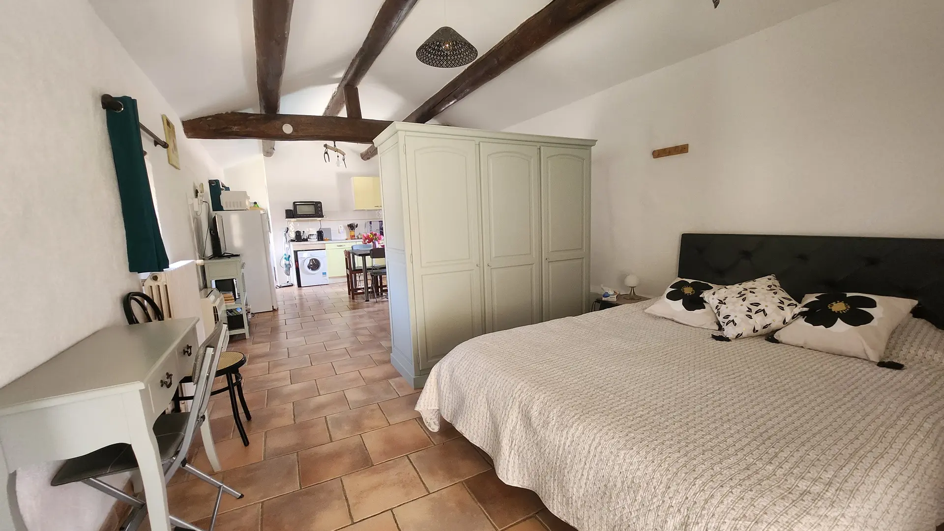 Ideal for nature lovers and hikers, (GR at 200m) La Fenière, large bright room of 50 m², comfortable, with a shaded terrace overlooking the vineyard of the property and the Luberon. Quite independent without screw to screw, it is part of the mas of your wine-growing hosts and where a cottage for 4 people occupies the west wing. Everyone has privacy, quiet. The 10x5 swimming pool is shared. The most: air conditioning, Wi-Fi, barbecue, garden furniture....