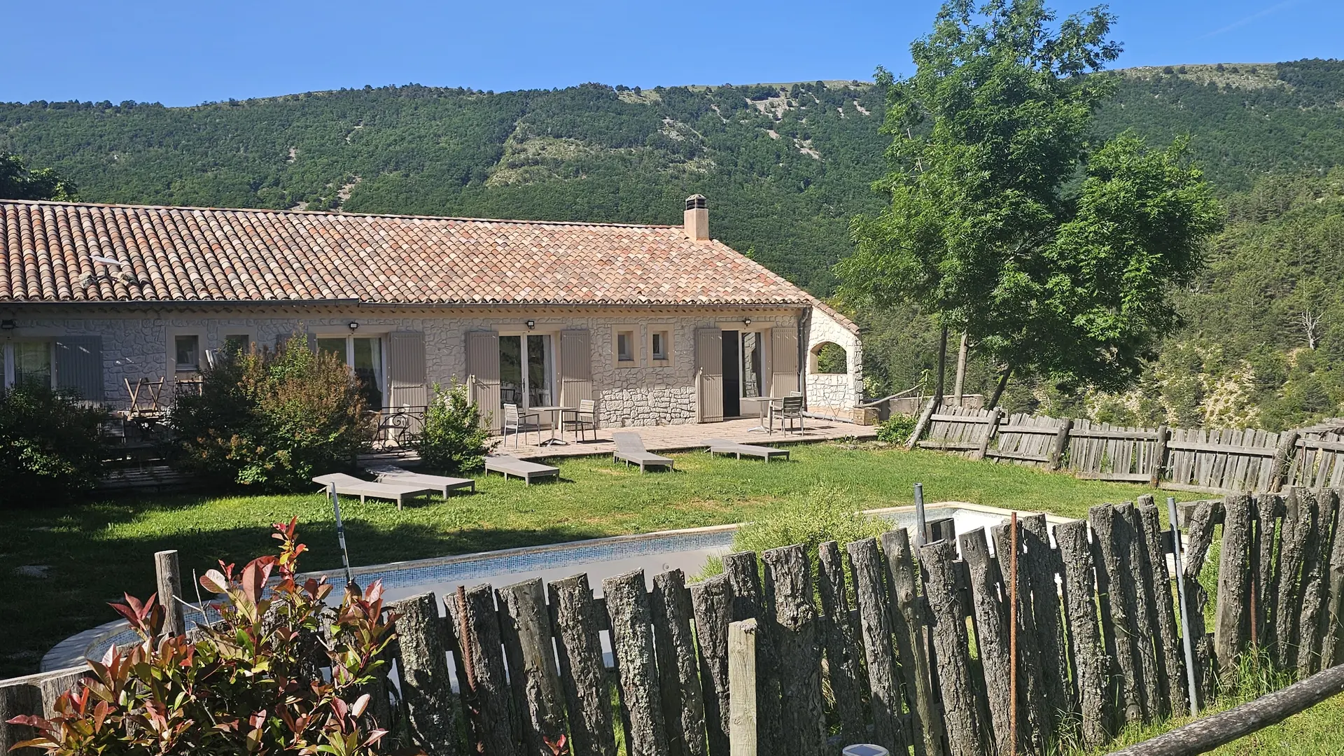 Located in the heart of a vast isolated organic farm, 11 kilometres from the village. Characterful house with 4 guest rooms surrounded by pastures home to Highland cattle and donkeys. Magnificent views of the surrounding mountains.