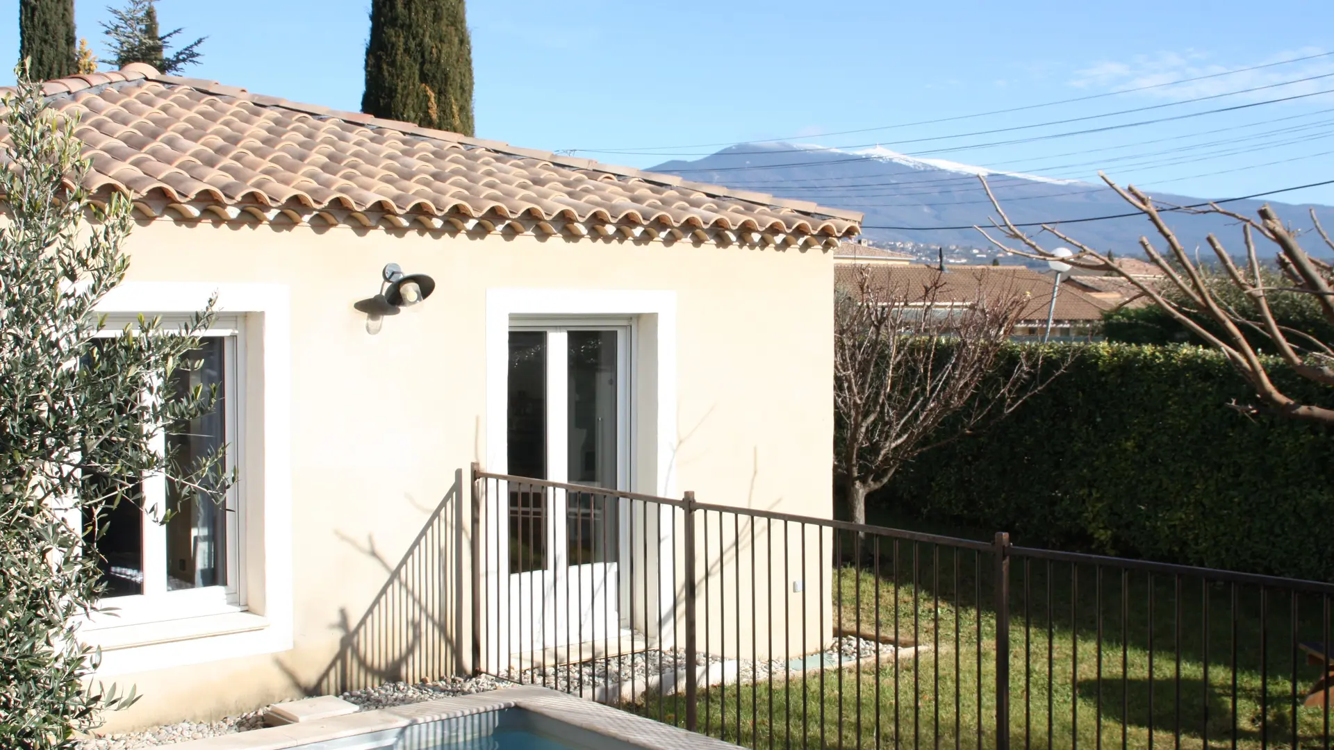 In the heart of Provence and its vineyards, at the foot of Mont Ventoux, near Bédoin, new 50 m² bungalow for 2 to 4 people, all comforts with one bedroom, private garden and private pool.
