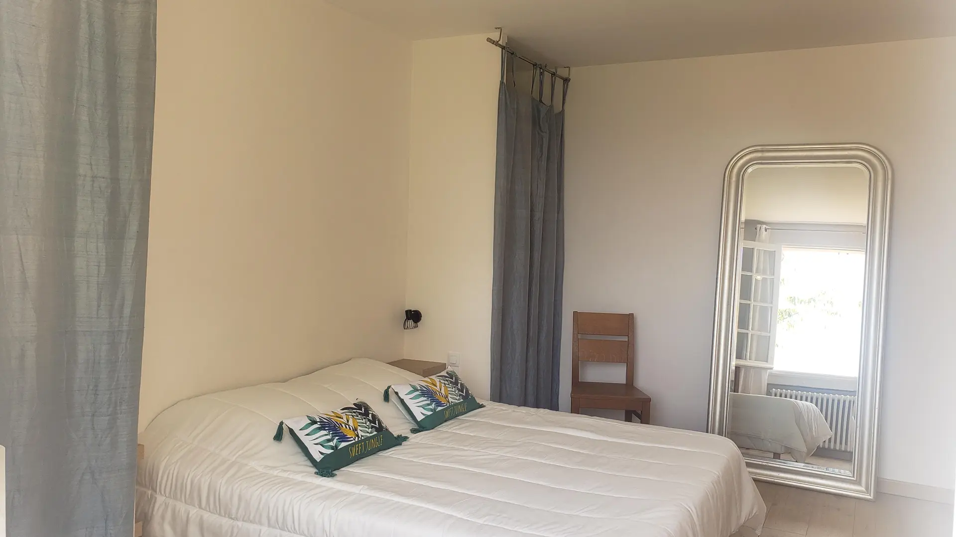 1 bedroom of 18m2 (1 bed in 160 and 1 bed in 90 and 2 cupboards), 1 bedroom of more than 15m² (3 beds in 90 and 1 large cupboard) with terrace. Moustiers earthenware bathroom with bath and shower and separate WC.