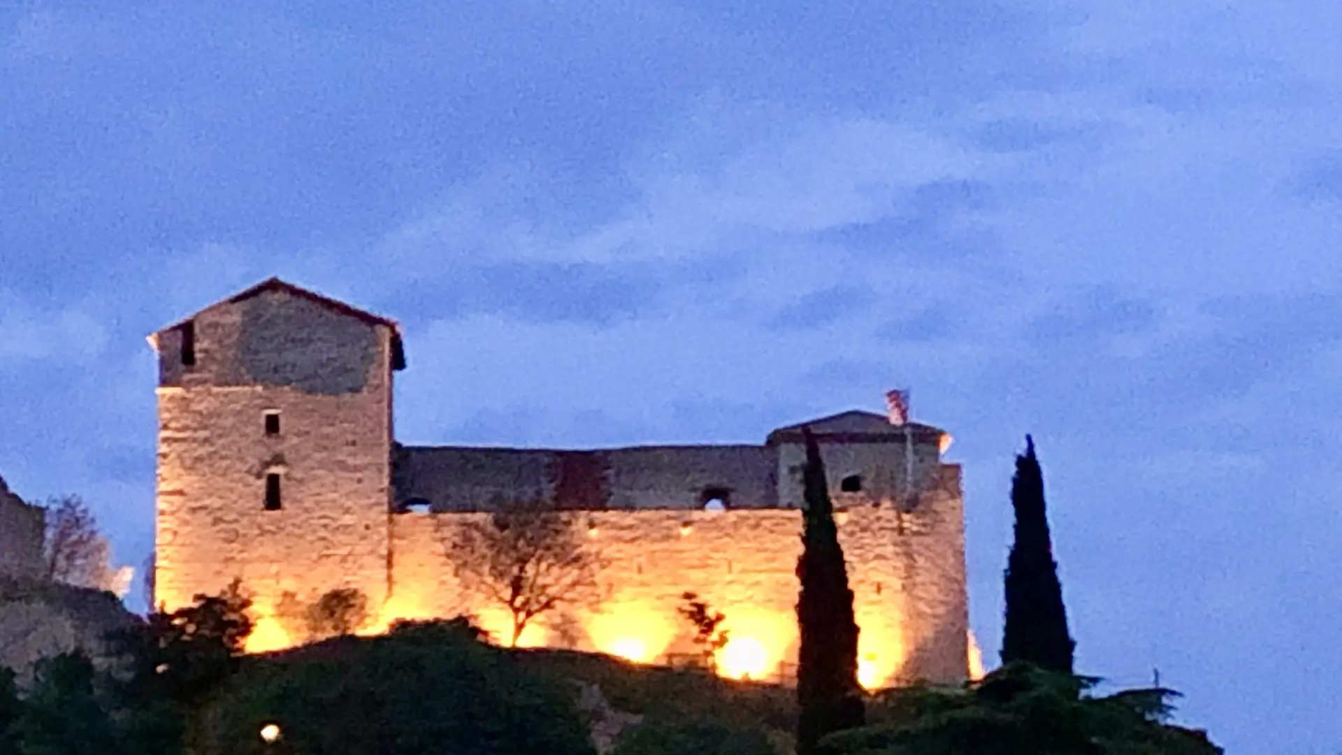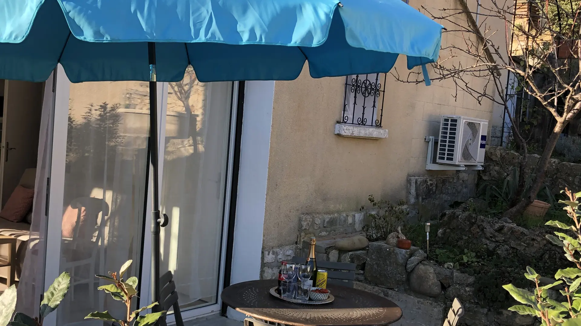 Charming apartment comprising a bedroom and a living room opening onto a modern kitchen, with an outdoor terrace offering a clear view of the castle.