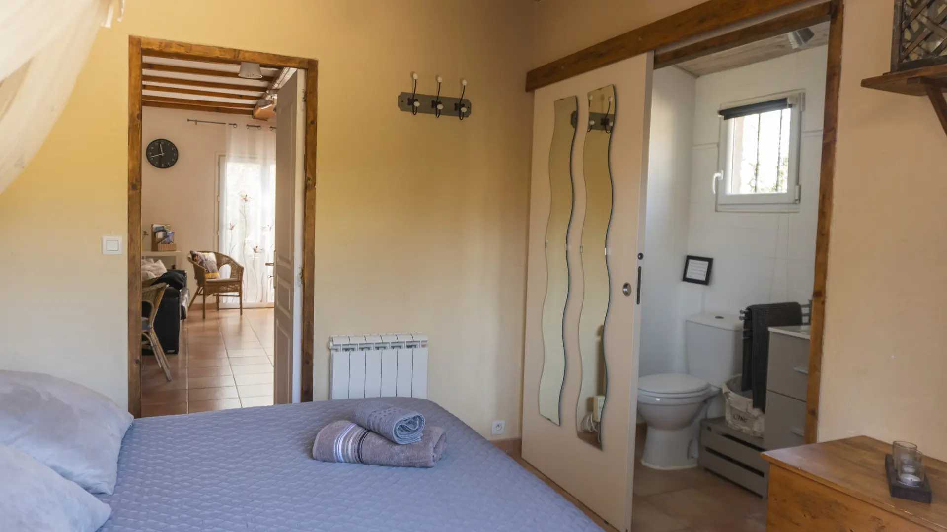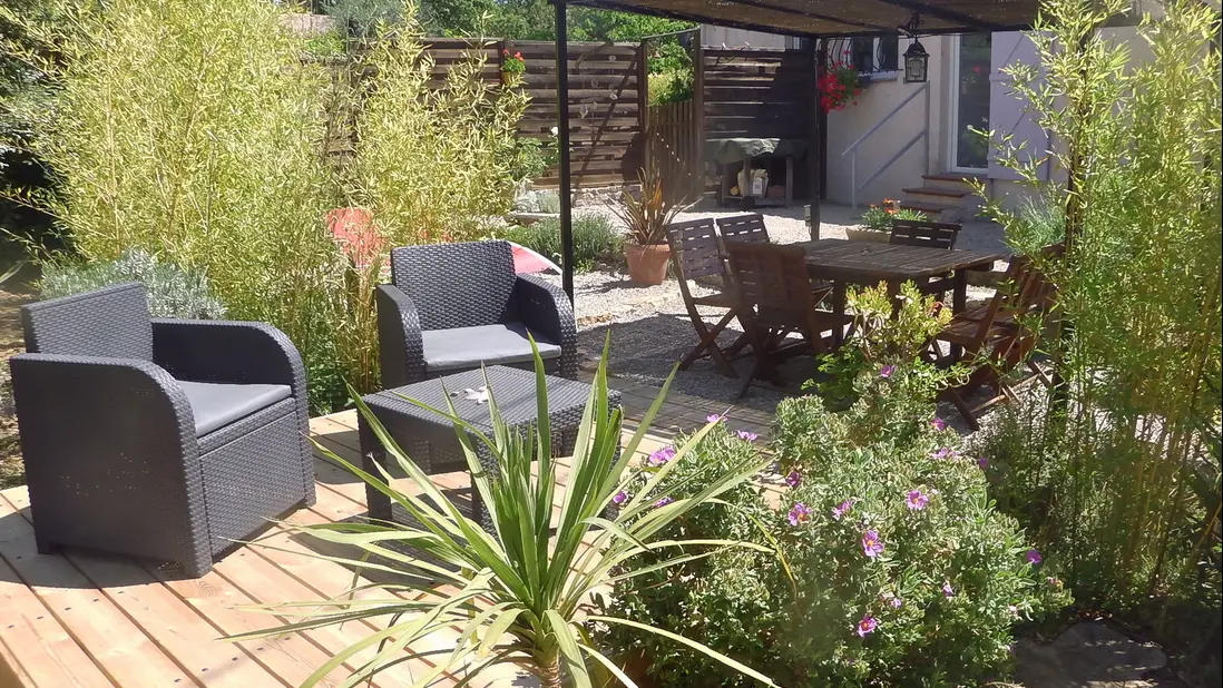 A nice adjoining house, fully independent, with an unobstructed view, located at the back of the owner's property. Private garden (300 m2), gravel terrace with a pergola, garden lounge, barbecue, private parking surrounded by electric fencing. Located halfway between the sea and the mountains, the area offers a wide range of sports and leisure facilities.