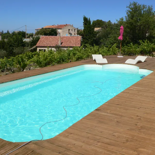 Here you are in the heart of the vineyards of Vacqueyras, 400 m from the town centre. This detached house with its south-facing terrace in an enclosed plot. 50m from the house you have access to a communal pool shared with another rental property.