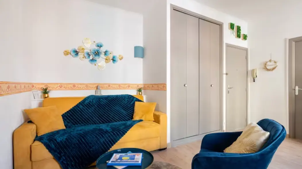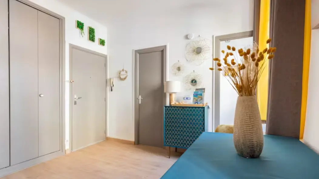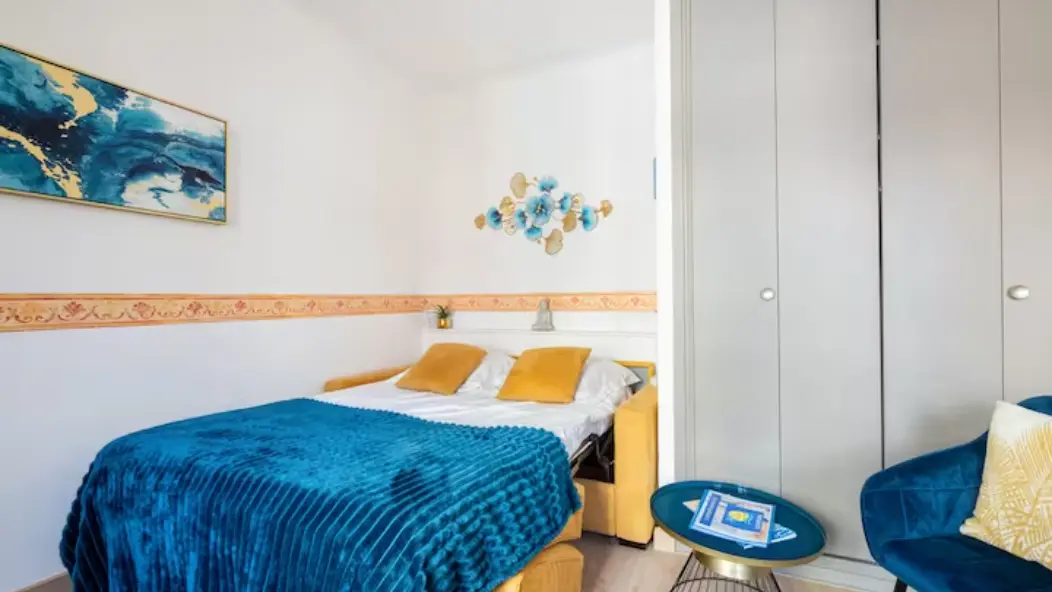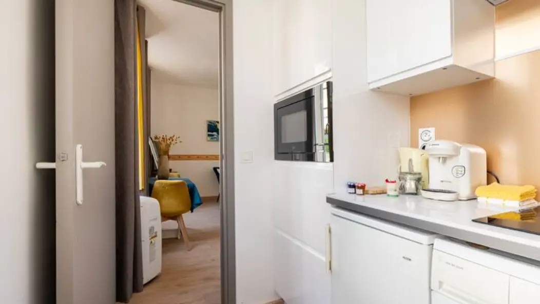 Modern, spacious and bright, the Apparté Marinoni is particularly well laid out, with a fully-equipped bathroom with shower and a separate kitchen to make you feel right at home. We have provided you with all the essentials so that you don't have too many things to bring back or buy for yourself during your stay (shower gel, shampoo, dry food, bottles of water, oil, salt, pepper, a few coffee capsules, cleaning products, washing machine detergent, etc.). It has a sleeping/living area for relaxing, working or eating, as well as a huge storage cupboard for all your belongings.