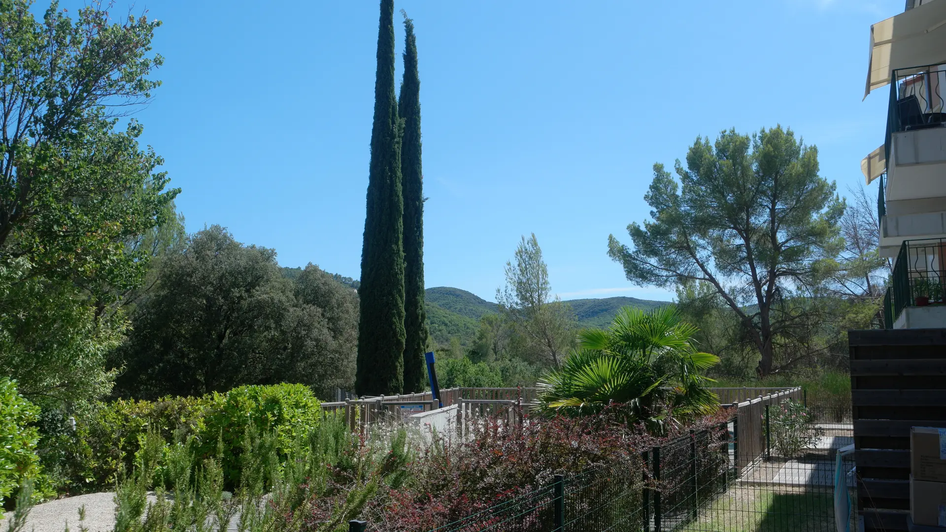 The Lou San Peyre residence (also known as Côté Provence II) is quietly set back from the Avenue des Thermes as you exit towards Riez. It comprises two buildings separated by a magnificent Provencal garden. Access to the first-floor apartment from the first floor is by elevator or staircase. Lou San Peyre is surrounded by parkland and forest. The balcony faces west. It overlooks the grounds of a senior citizens' residence. You have a view of the mountains on the other side of the Verdon, and through the trees in the park you can see the village with the Templiers castle.