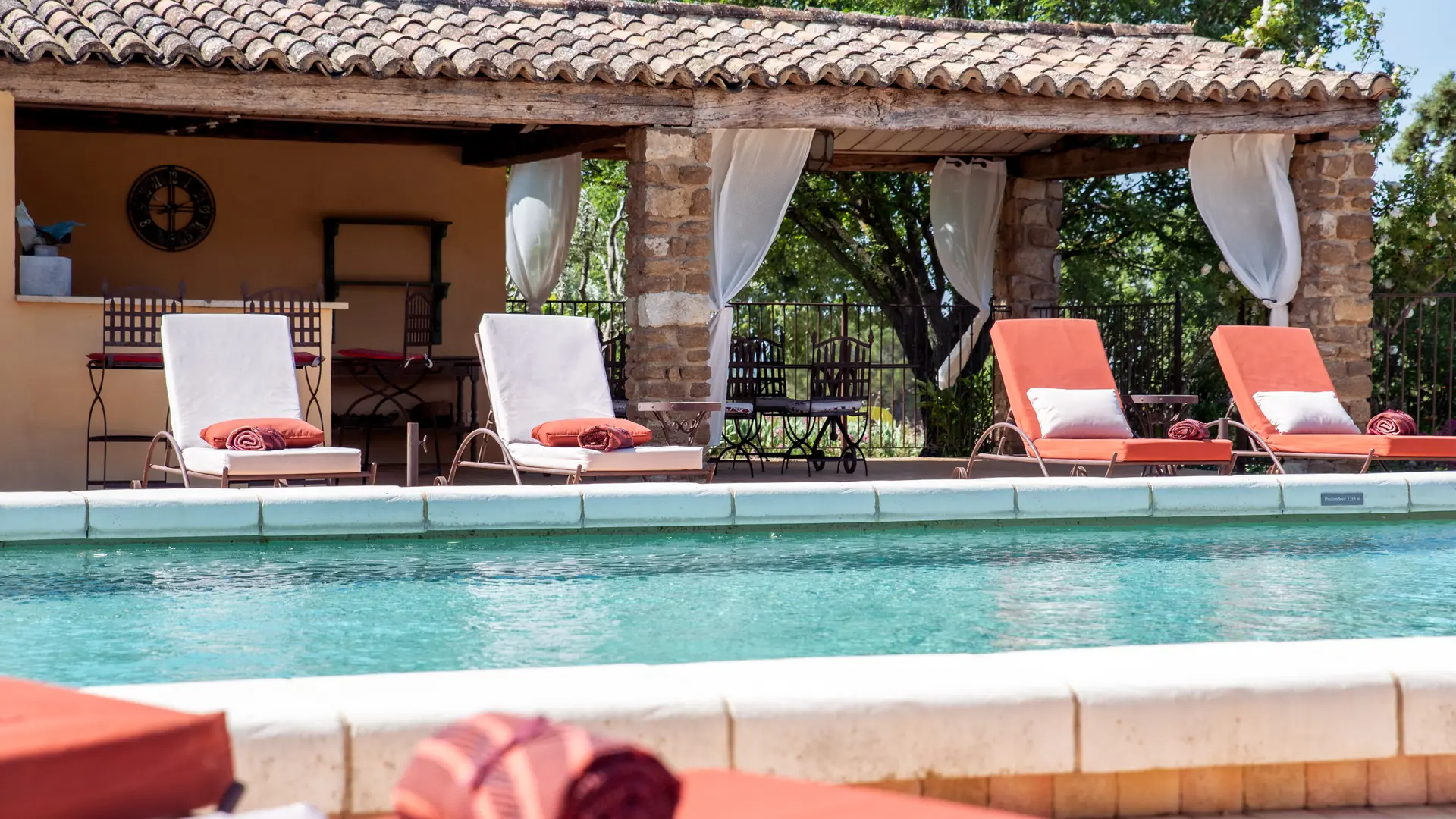 The 18th century building is built on the rock. Its immense plane tree, its square courtyard, its dry stone walls, the surrounding vineyards and the exceptional view of the Dentelles de Montmirail, from its heated pool or summer kitchen, will seduce lovers of authenticity in search of well-being and serenity.