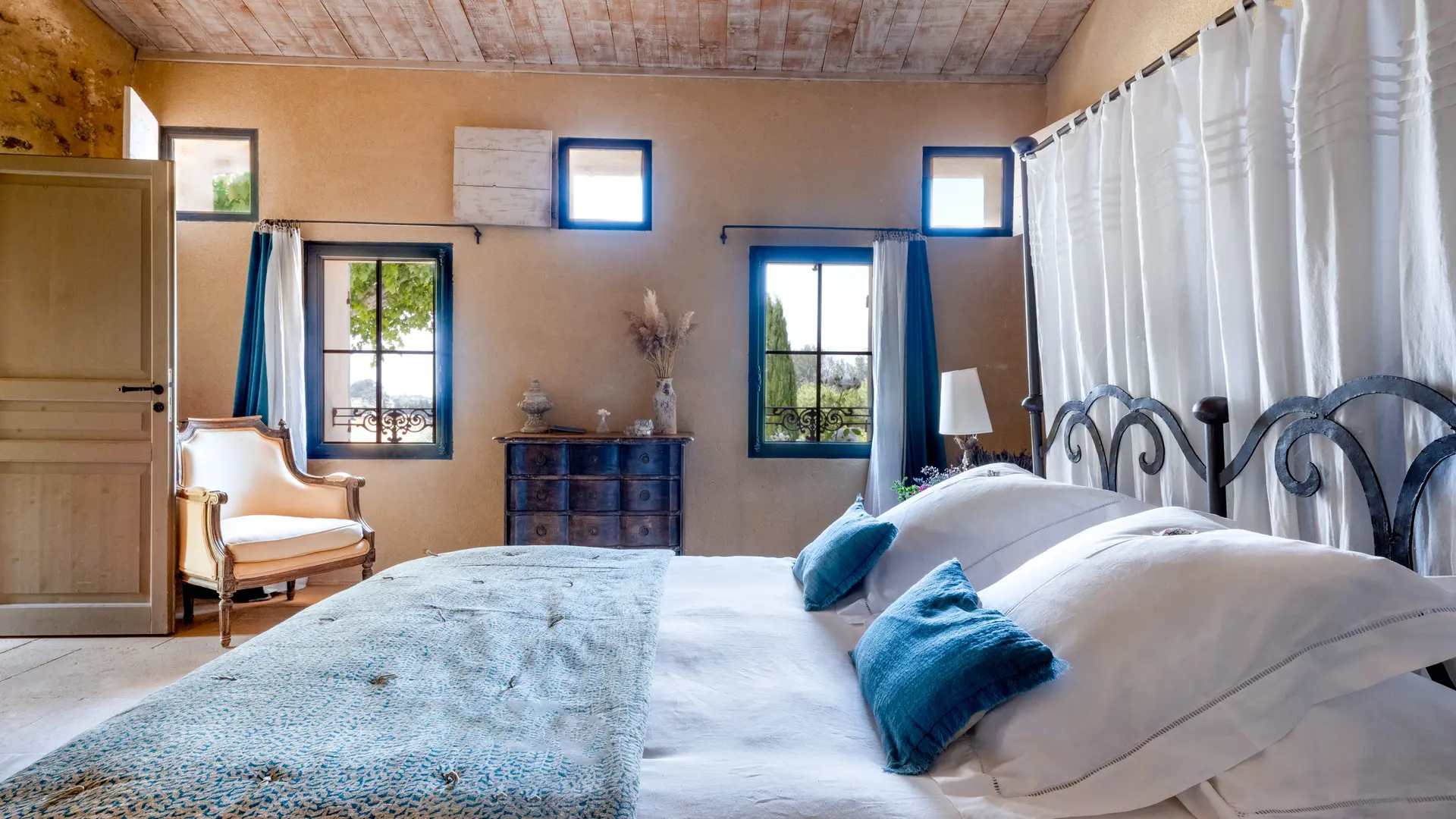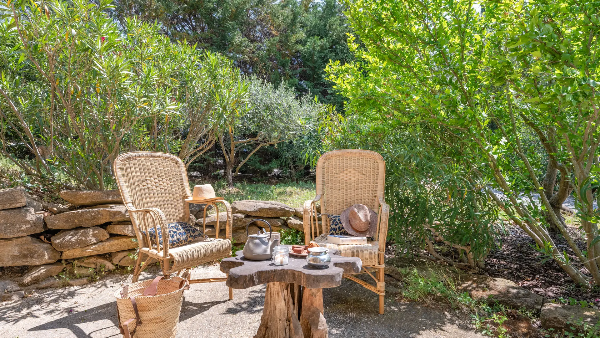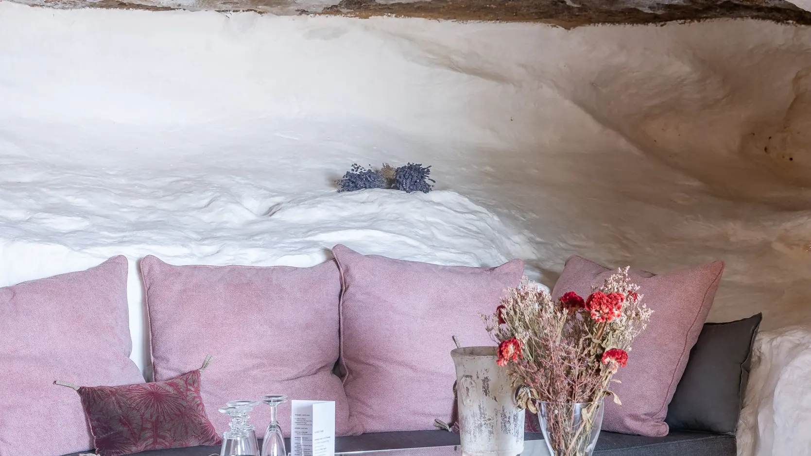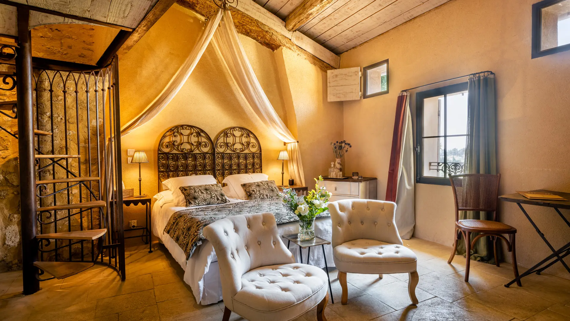 The two duplex suites with fireplace, the family suite, the two semi-troglodyte rooms, all very spacious, as well as the cottage, the Barn, (independent charming cottage for 8 to 10 people with fireplace and private pool), are restored in a refined and original spirit, and let the rocks appear naturally in the rooms.