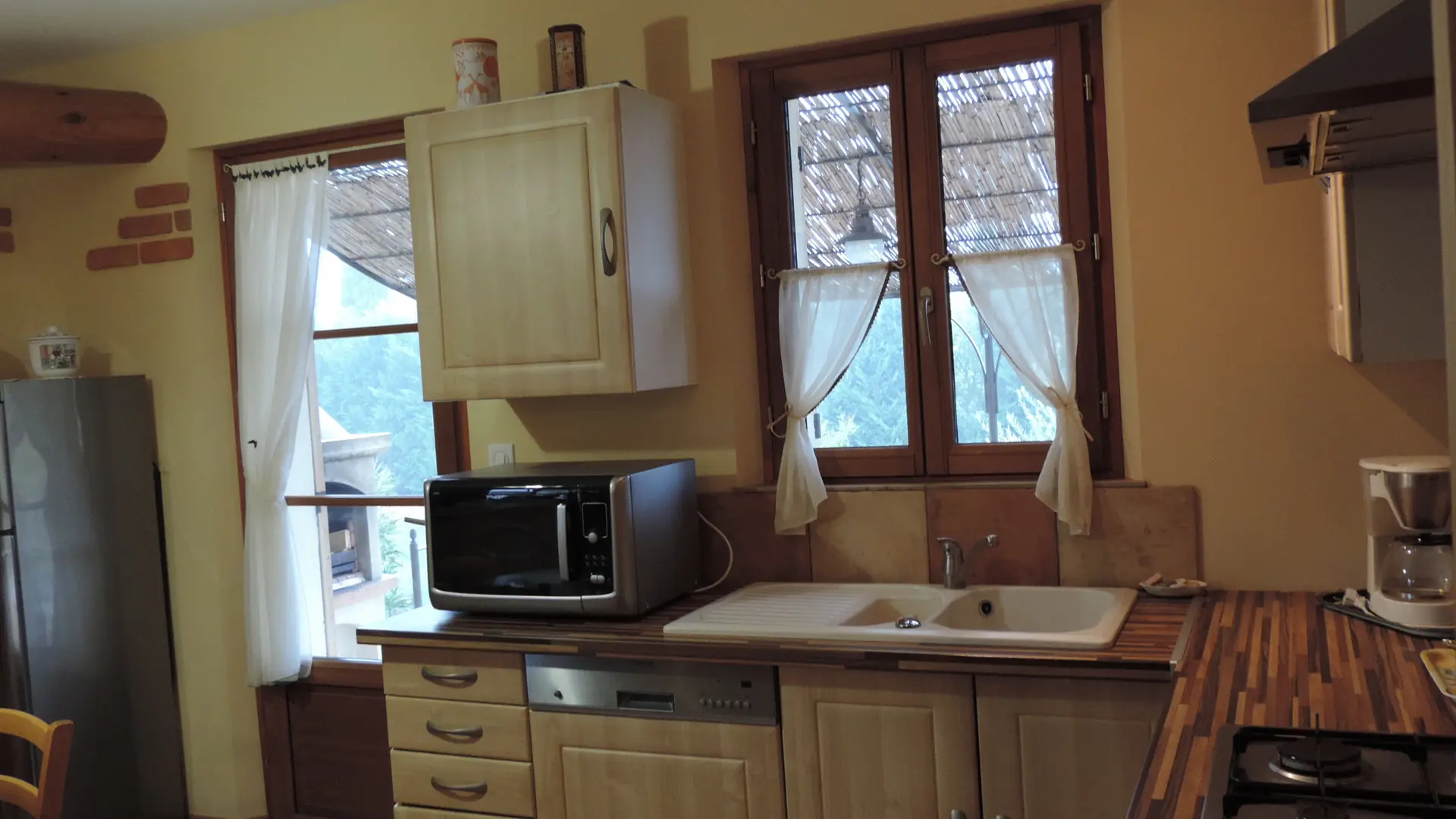 Rental with 2 bedrooms: 1 double bed and 2 single beds, bathroom with toilet and walk-in shower. Welcome products, hairdryer. Living room, equipped kitchen. Private terrace and solarium; play area with swings; access to hiking trails.