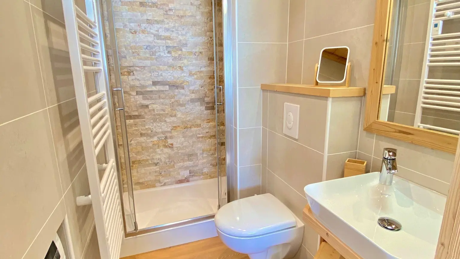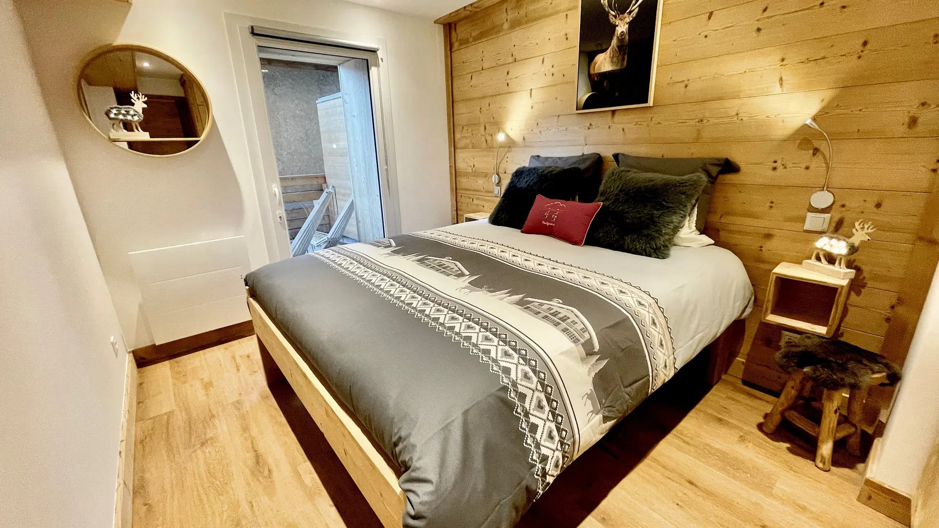 1 double bedroom (160x200 cm bed) with shower room and WC - View of the slopes and the ski school