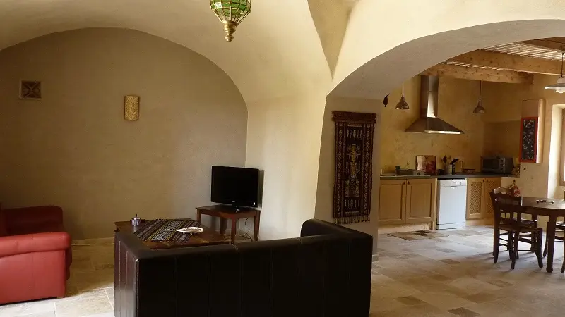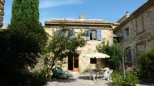 Situated in the heart of nature, in the middle of vineyards in the famous Uchaux massif, you'll enjoy a private interior garden with an open barn for your lunches sheltered from the sun, and access to the swimming pool. You can also dine at the front of the house, also privately owned, facing the vineyards for sublime sunsets. The house has 2 bedrooms, a master bedroom of over 35 M2 with a 160cm bed and the other with 2 90cm beds that can be twinned. Lovely Italian-style shower in travertine. 2 WCS. Fully equipped kitchen with dishwasher, induction hob and washing machine. On arrival, we'll provide you with information on how to visit the best Côtes du Rhône wine cellars, Provencal markets and picturesque villages. Away from the road, this house is perfect for children, who will be able to cycle along the small paths in the area, and for older children, there are lovely mountain bike trails in the Massif. Free wi-fi access. Brochure on request.