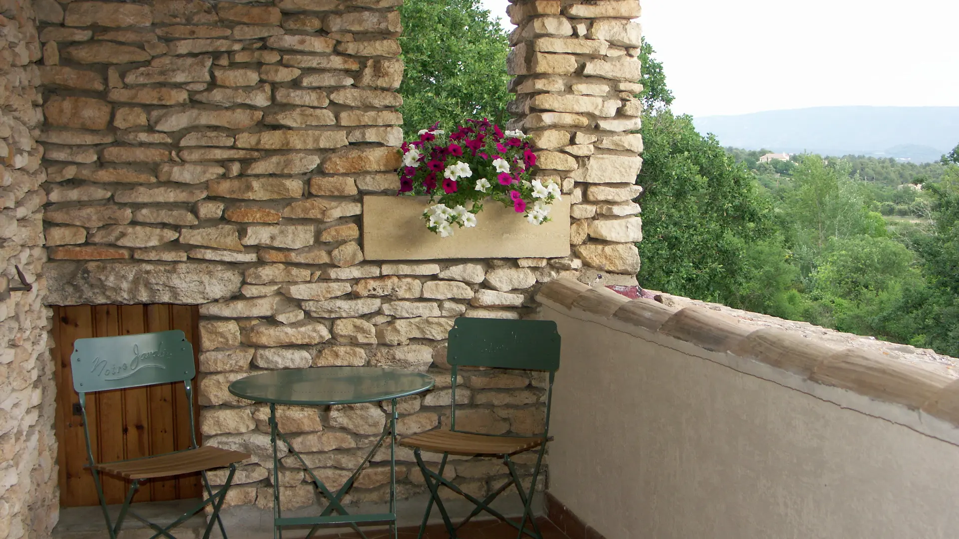 It features air-conditioning, bathroom, toilet and private terrace with unobstructed views of the Luberon.
