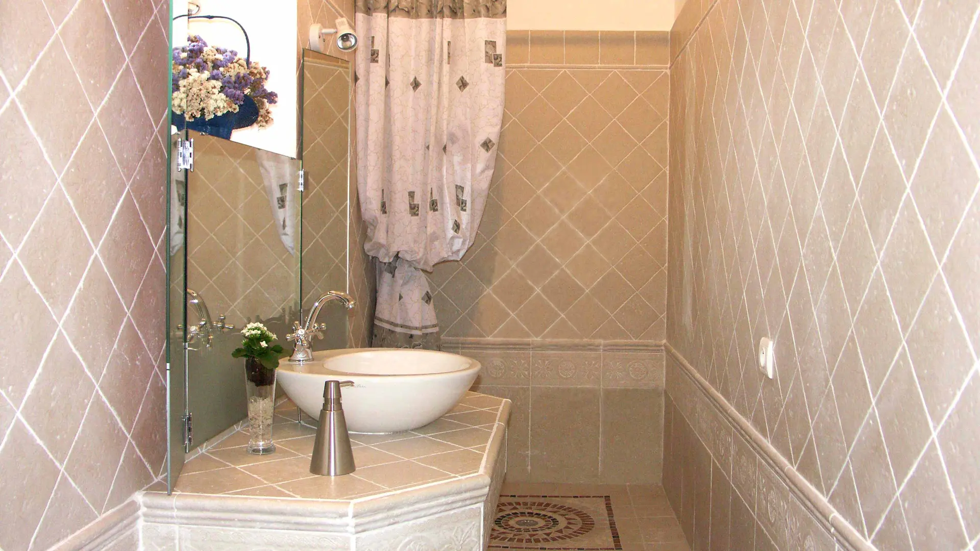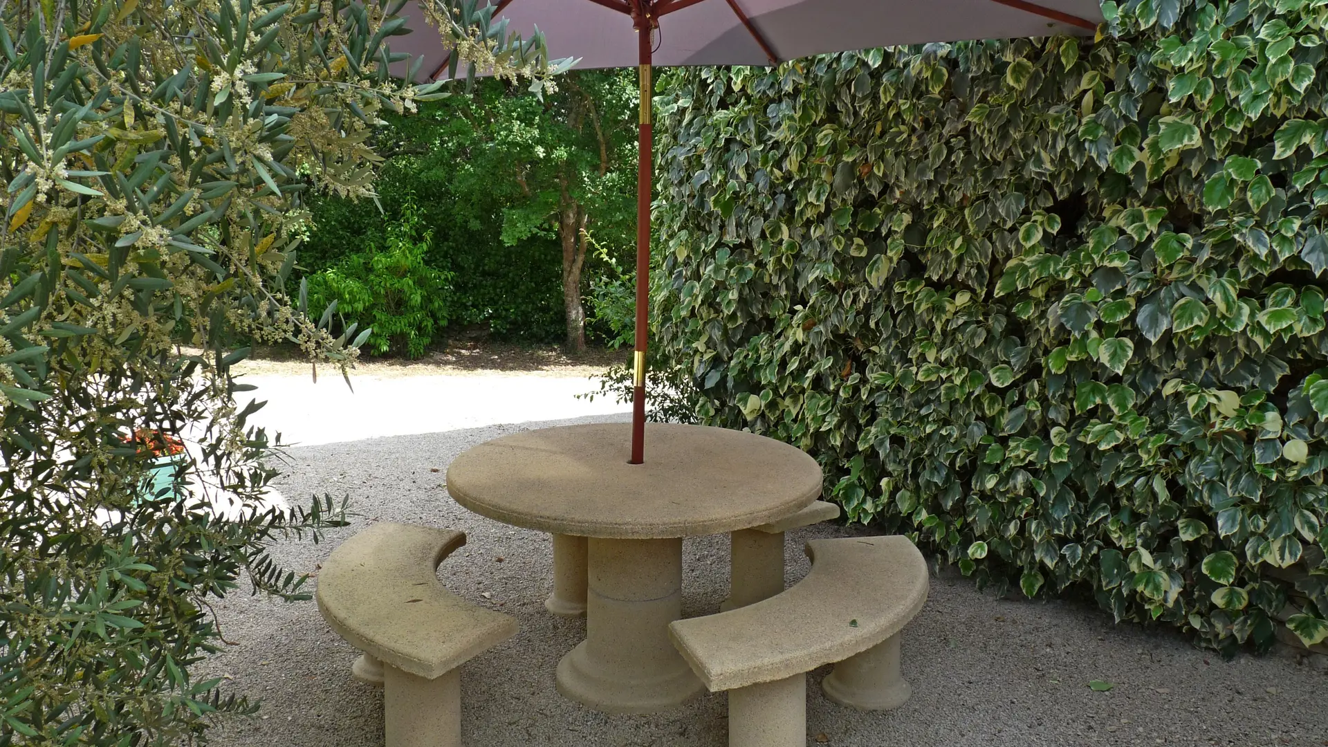 On the first floor, the Fleur d'olivier guest room is a suite that can accommodate up to 3 people (1 double bed, 1 single bed) with independent access, and an outdoor area with a stone table and benches. Air-conditioned, it also has a private bathroom and toilet. View over the countryside.