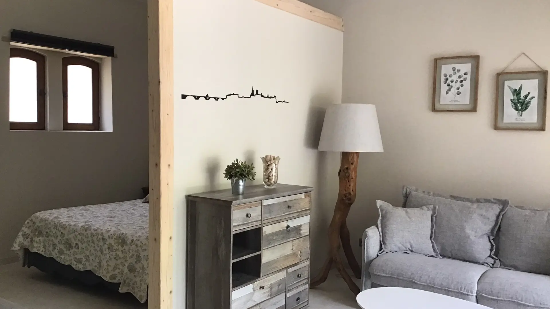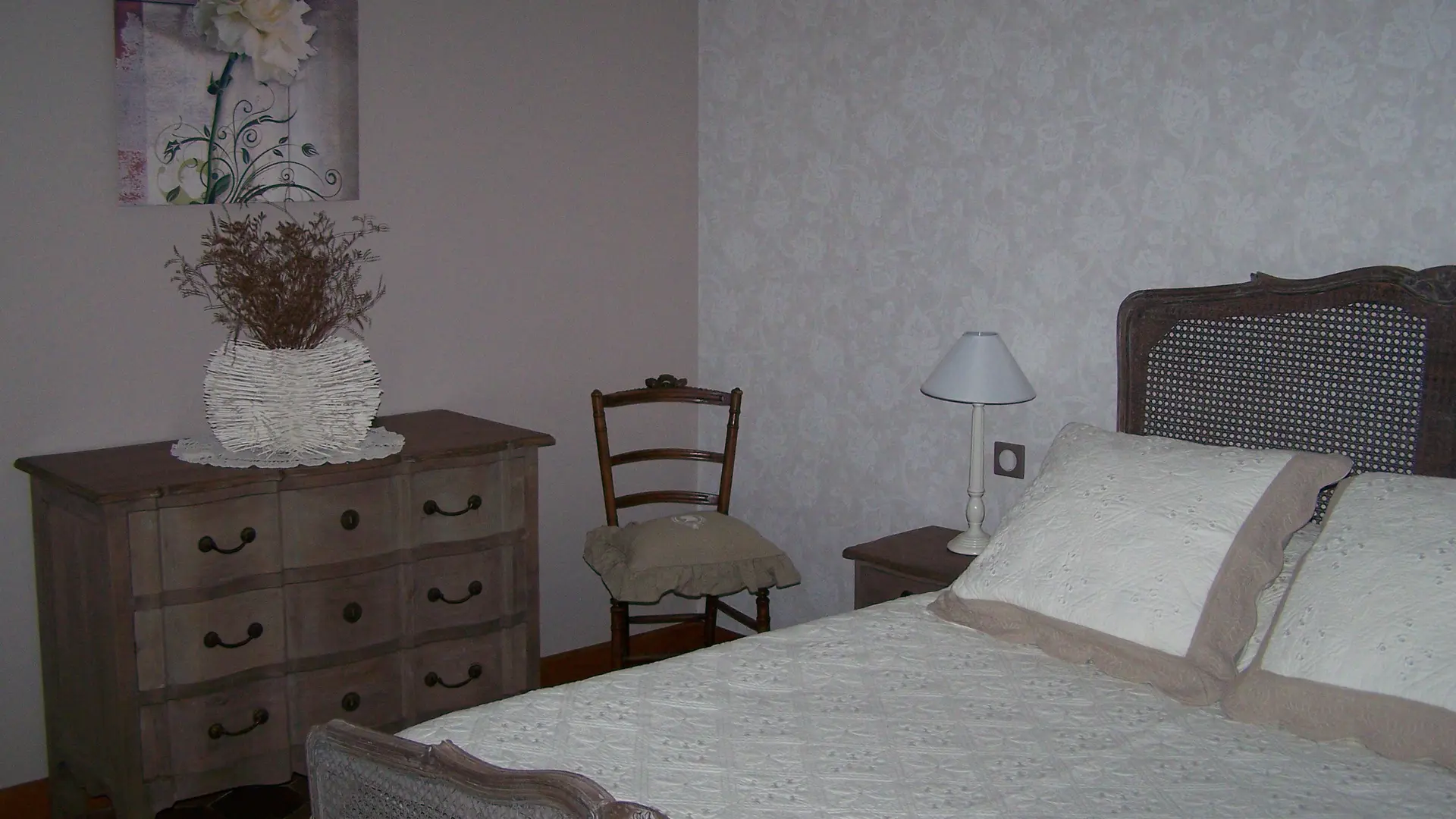 Located on the first floor of the farmhouse, the elegantly decorated Le Pigeonnier guest room can accommodate up to 3 people (1 double bed, 1 single bed) and has independent access.