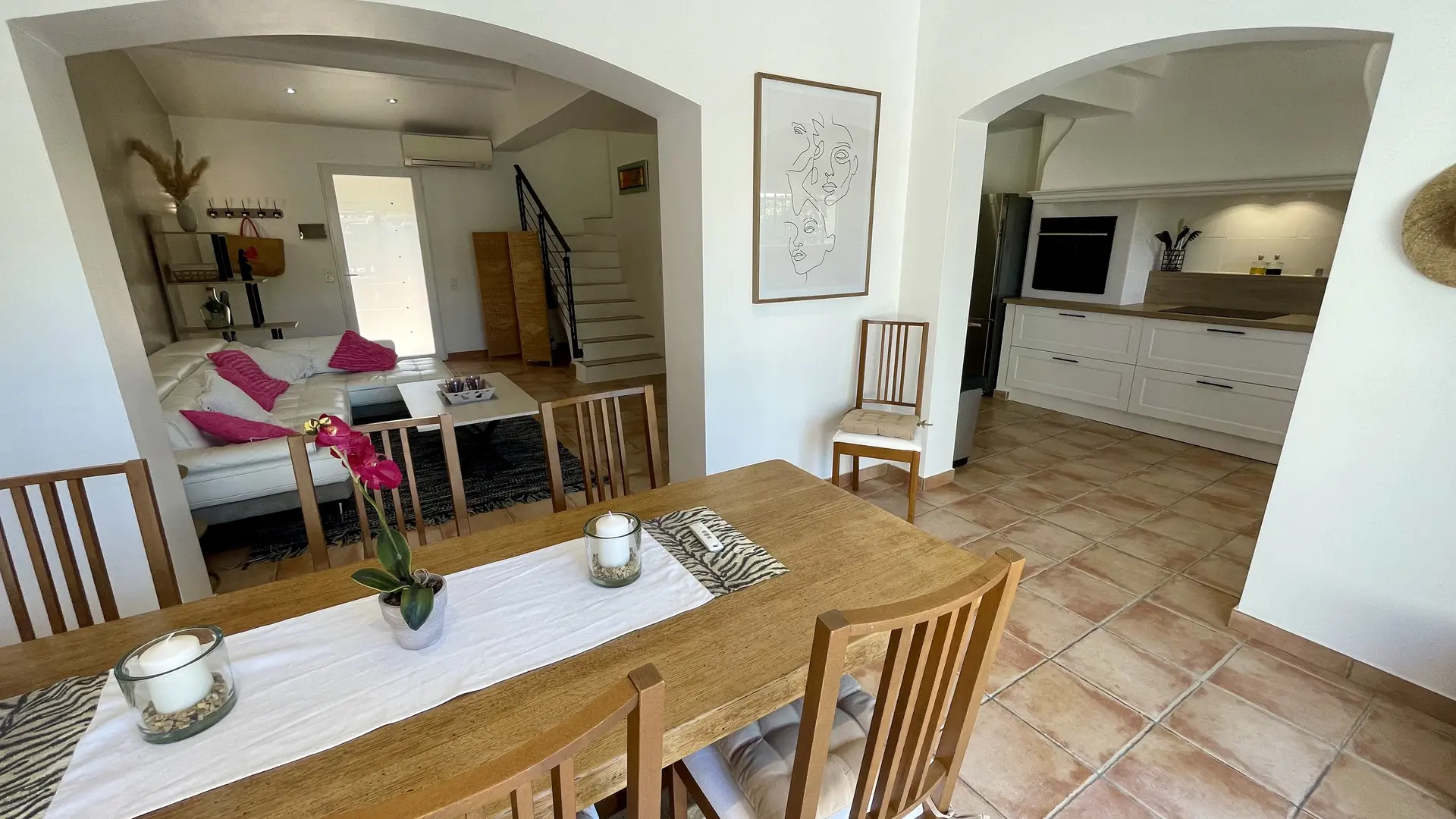 This completely renovated, air-conditioned house offers all the comforts you need for a well-deserved holiday. It has a living/dining room and three bedrooms.
