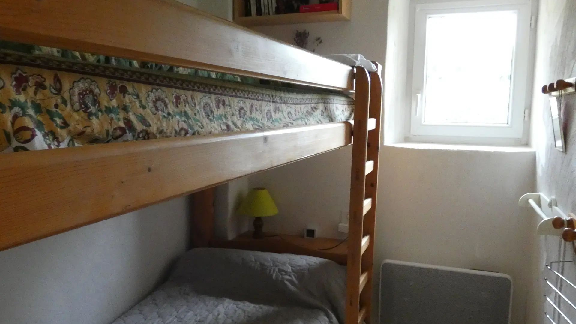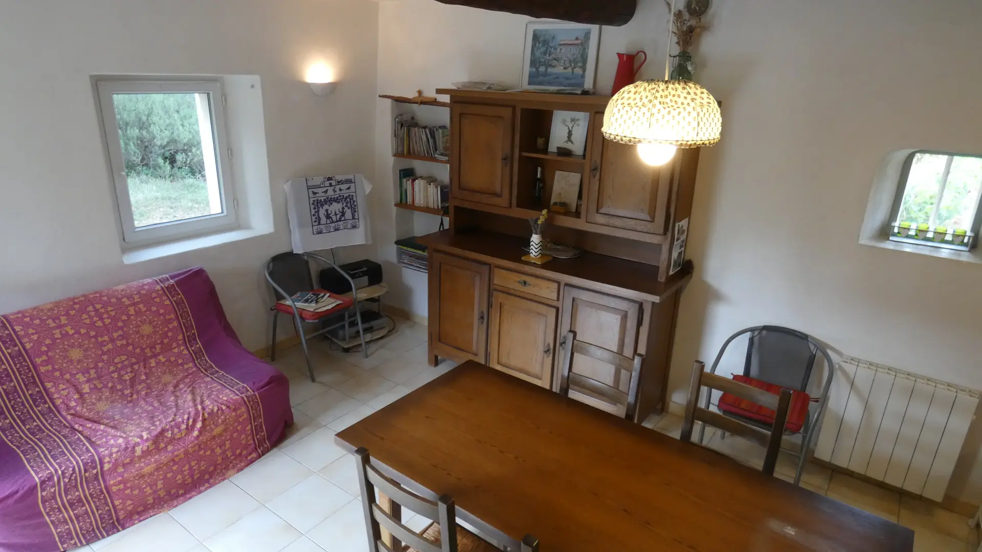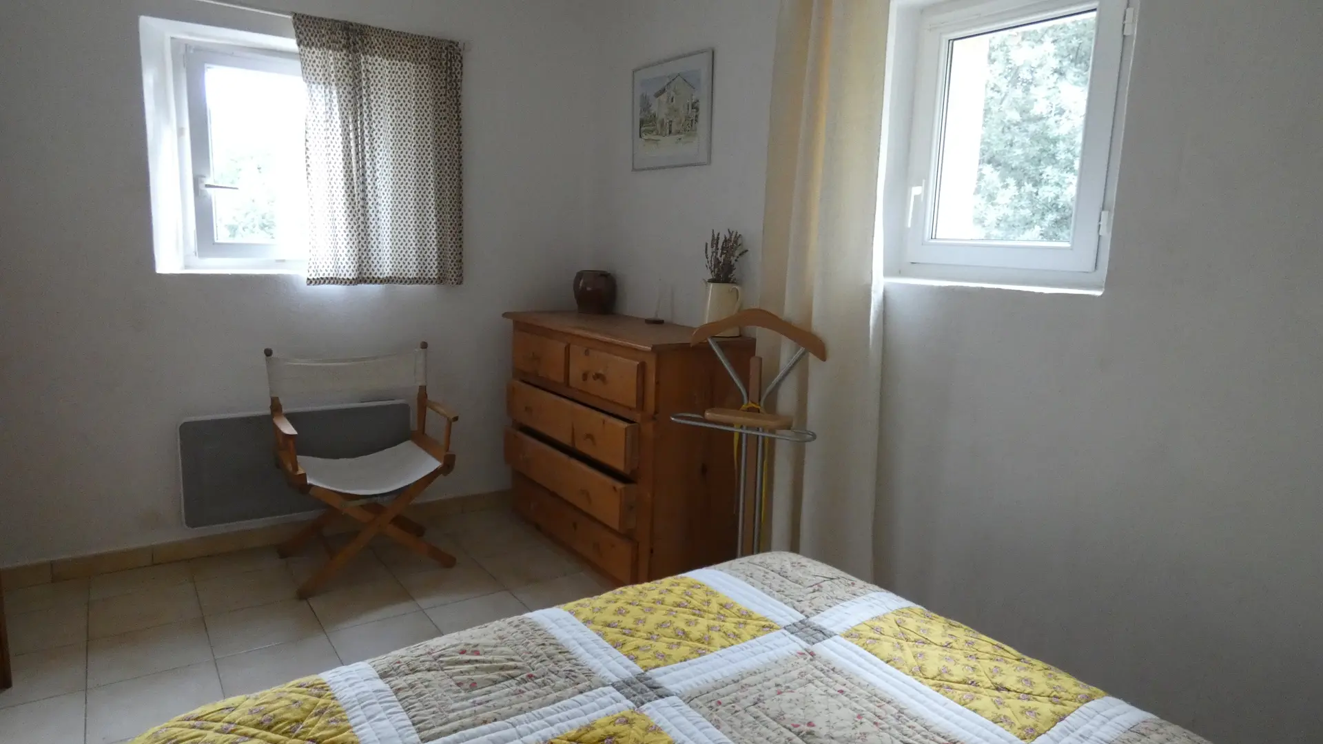 Very nice fully restored independent charming house, in the countryside. Very beautiful view. Located 4 km from the village. Surrounded by vineyards and oaks. On the ground floor: living room, kitchen area. On the floor: 1 bedroom, sleeping area with bunk beds for two, bathroom and toilet.