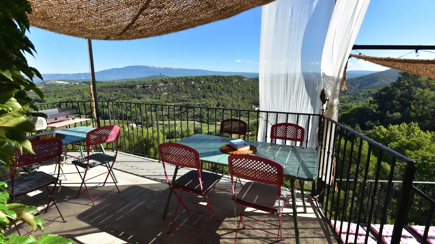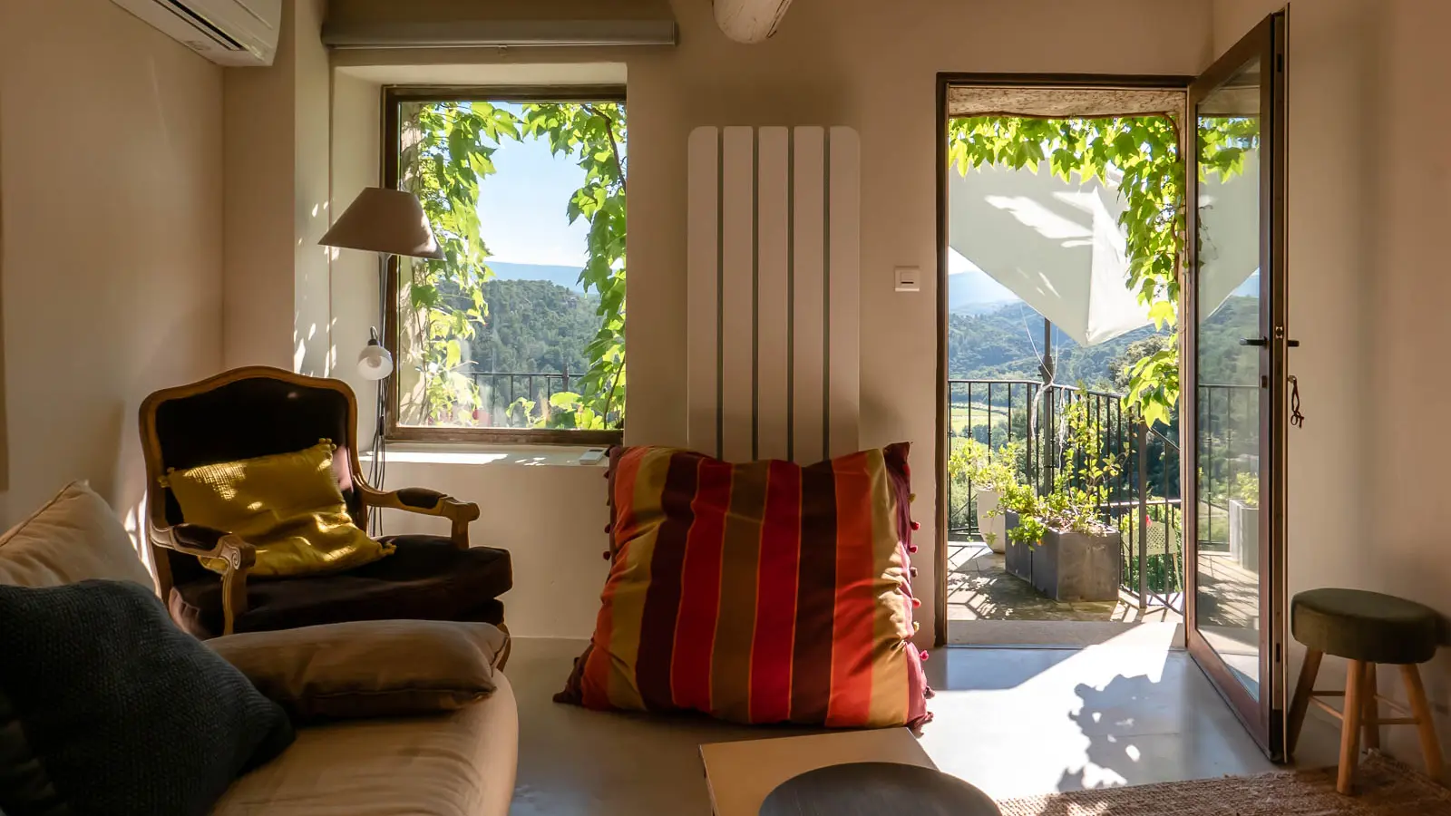 Once you have opened the gate leading from the pretty alley in the centre of the village, you will appreciate the comfort of the two houses full of charm with their independent bedrooms and the common rooms overlooking the terrace and its splendid view of the Mont Ventoux.