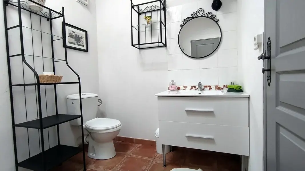 - On the ground floor: Living area opening onto the terrace, dining room with a large table around which you can take your meals, a living room with a sofa bed for 2 people, flat screen TV, DVD player, a typical Provencal kitchen with dishwasher, refrigerator, hob, large oven, microwave, etc..., a bathroom with shower, WC and washing machine.