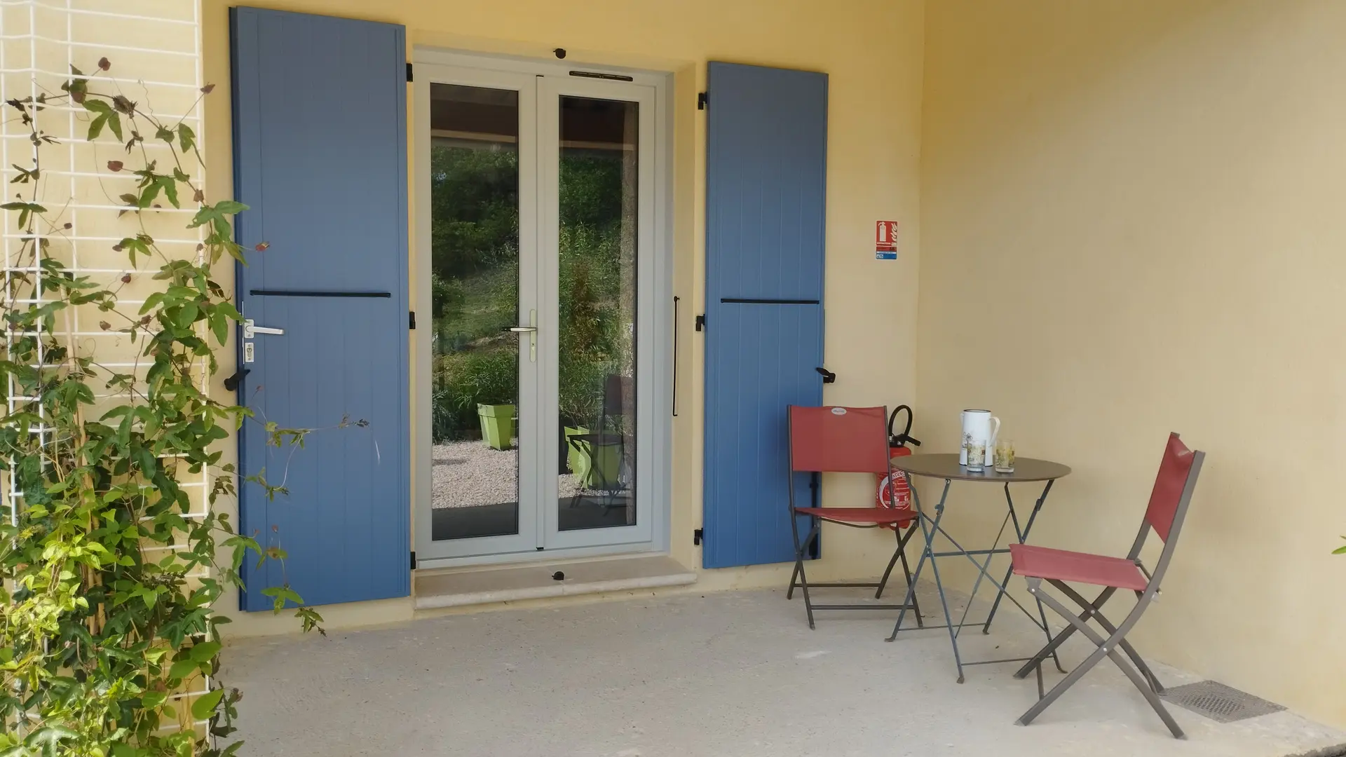 Beautiful duplex guest room of 27m², with terrace. On the ground floor, a pleasant living area with a small seating area, a bathroom with a walk-in shower, and a separate toilet. And on the mezzanine, a beautiful bedroom.