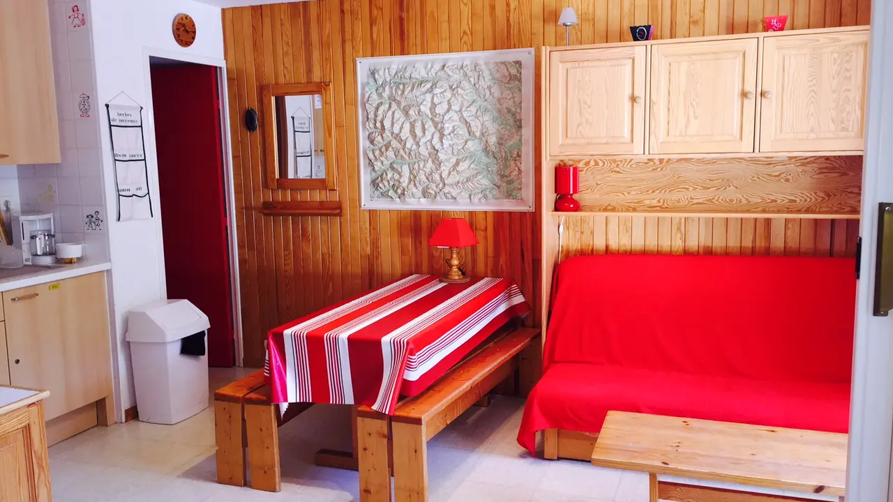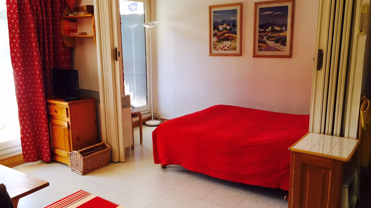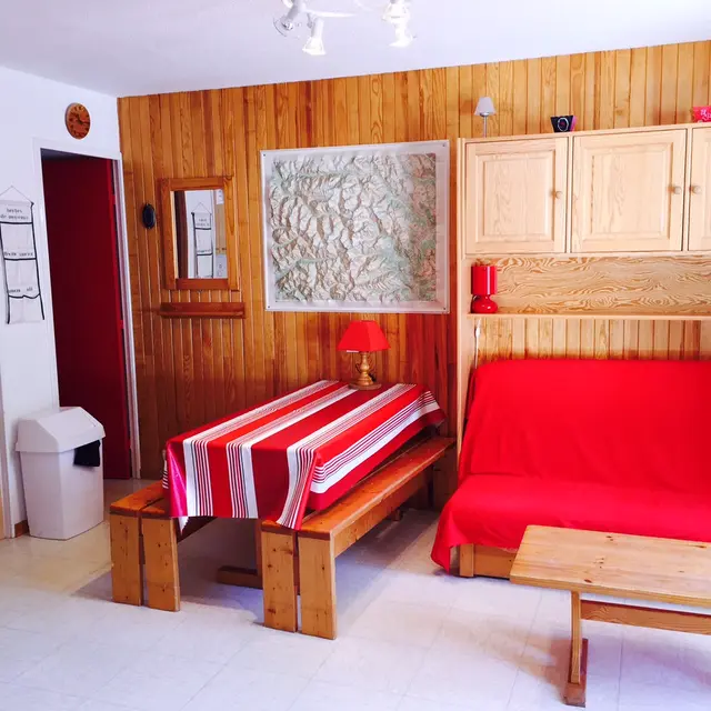 36 m2 south-facing apartment with large balcony, located at the foot of the slopes and close to shops. 2-room apartment for 4/6 people, comprising 1 bedroom opening onto the balcony (bed 140), 1 independent cabin (2 bunk beds) and a living room (sofa bed).