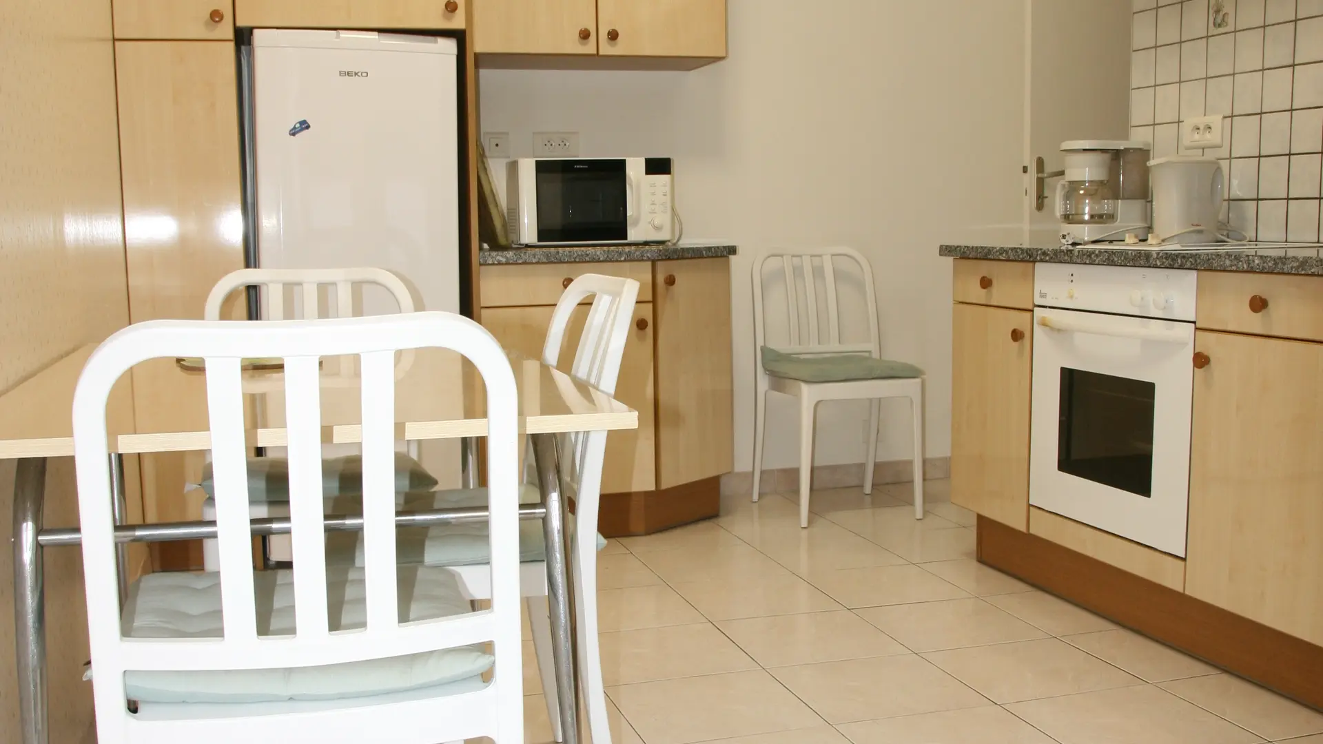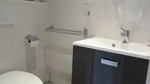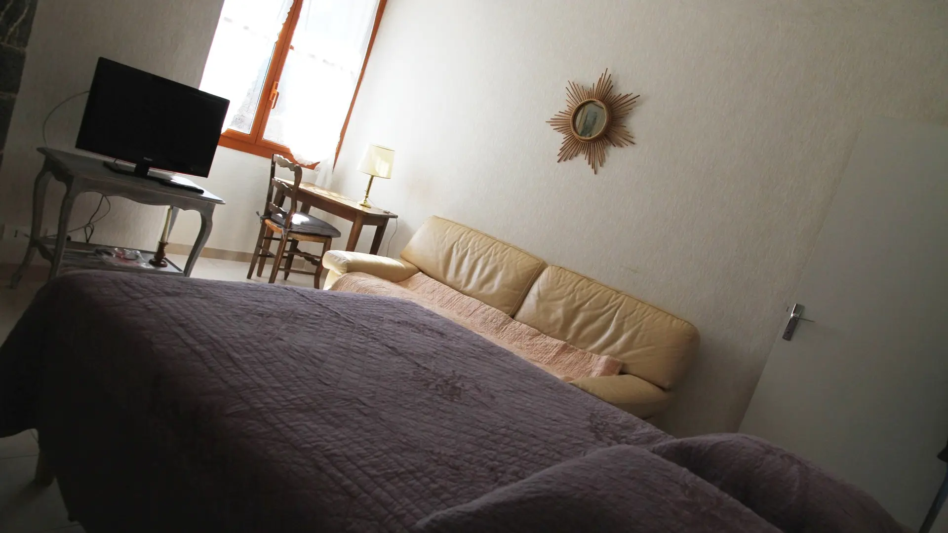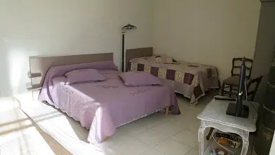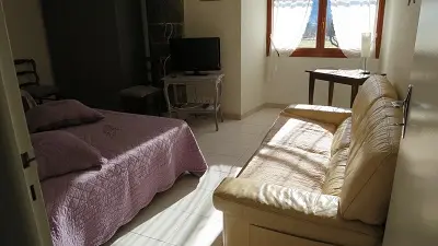 Apartment in a beautiful building with character. Comfortable fully equipped apartment with view on the Roc : 1 fitted kitchen with electric hob, electric oven, fridge with freezer, extractor hood, microwave oven, crockery, kitchen utensils, coffee maker, electric kettle, toaster, TV, 2 bedrooms, 2 double beds, 1 single bed. 1 shower room with shower cubicle, furniture with built-in washbasin, w.c. Television with sockets in the kitchen and bedrooms, sofa. Ironing board and iron, hairdryer, shared washing machine, barbecue. Water and electricity included.