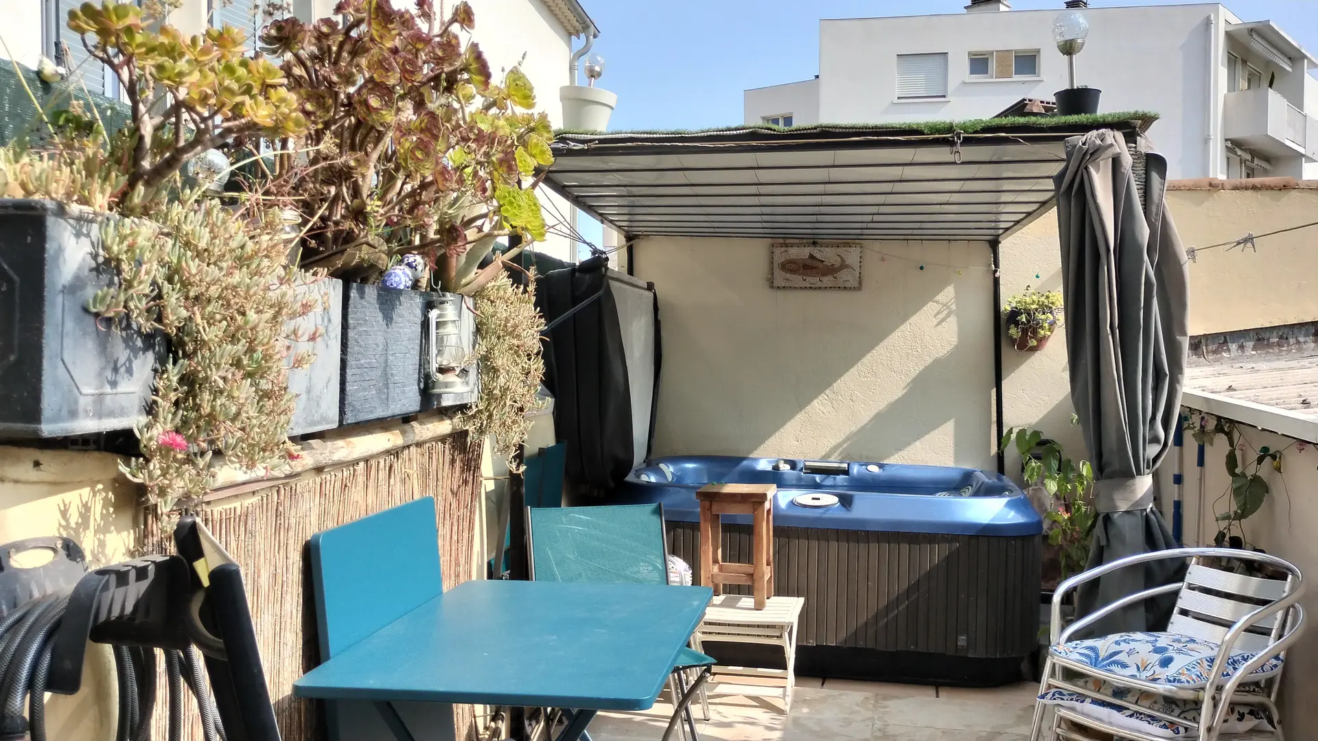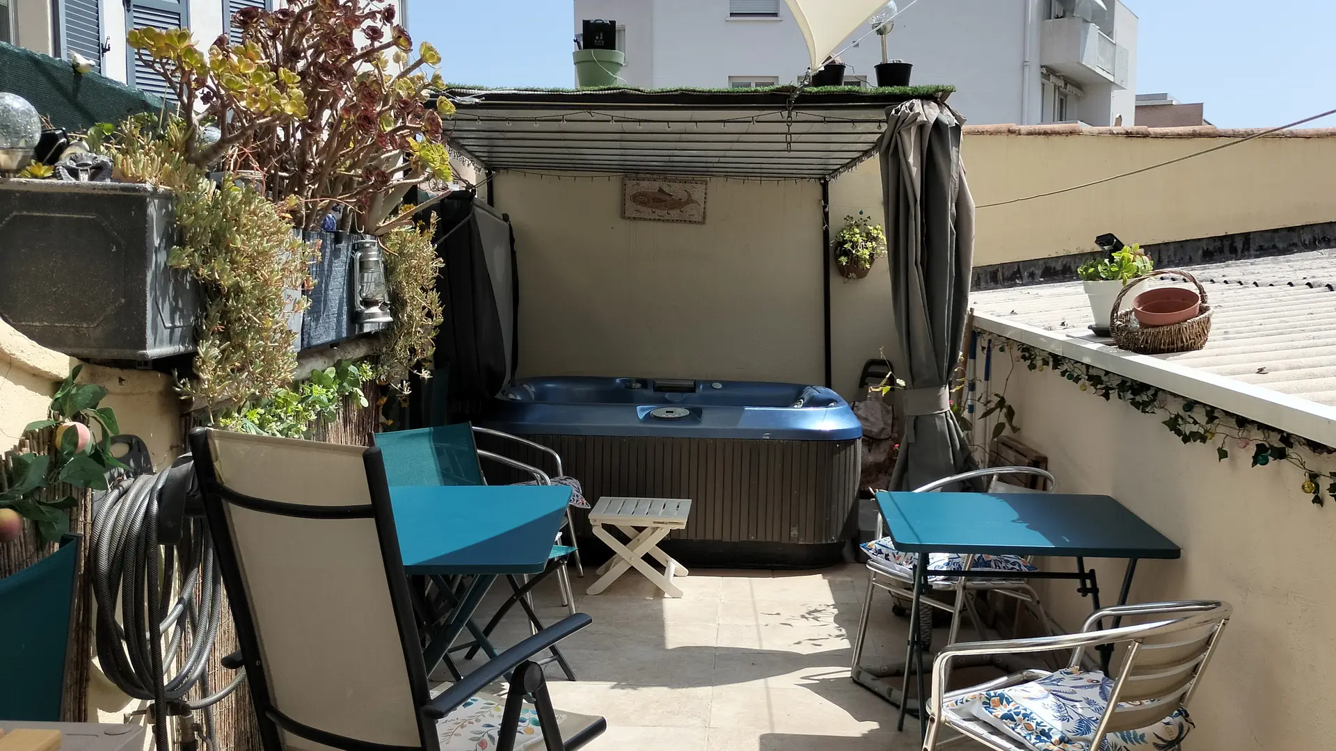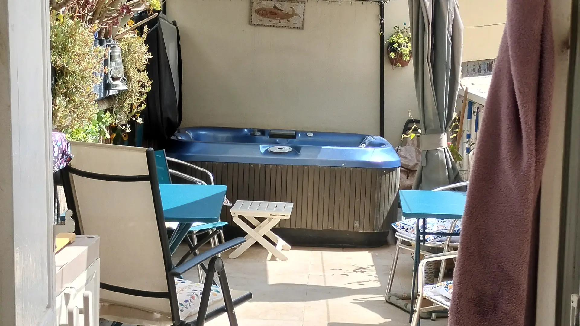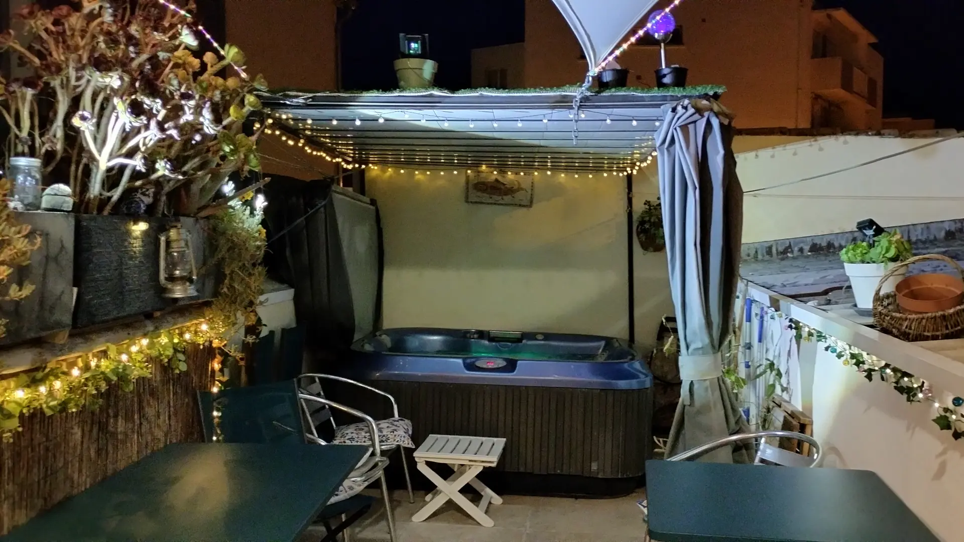 The apartment is located on the raised ground floor with a terrace where you can enjoy your meals and then relax in the jacuzzi and enjoy the solar shower.