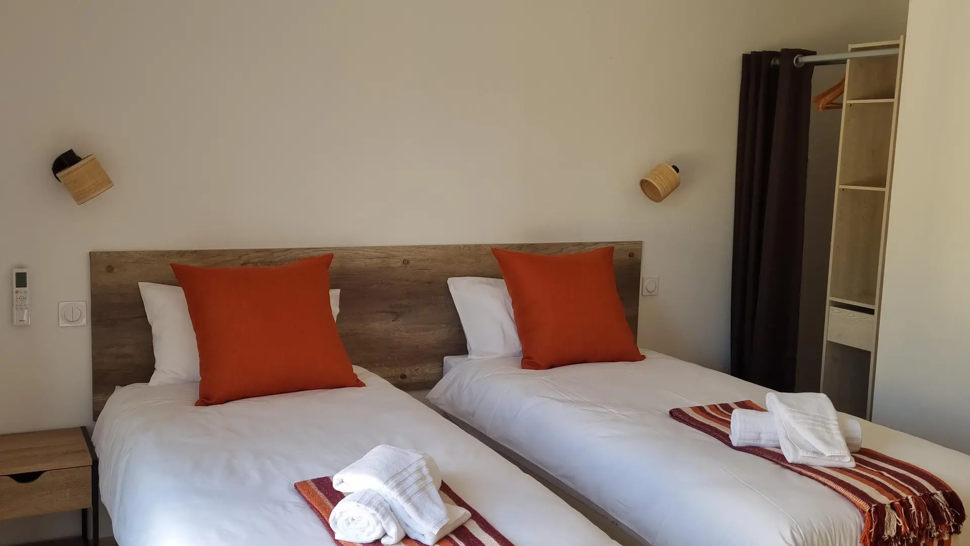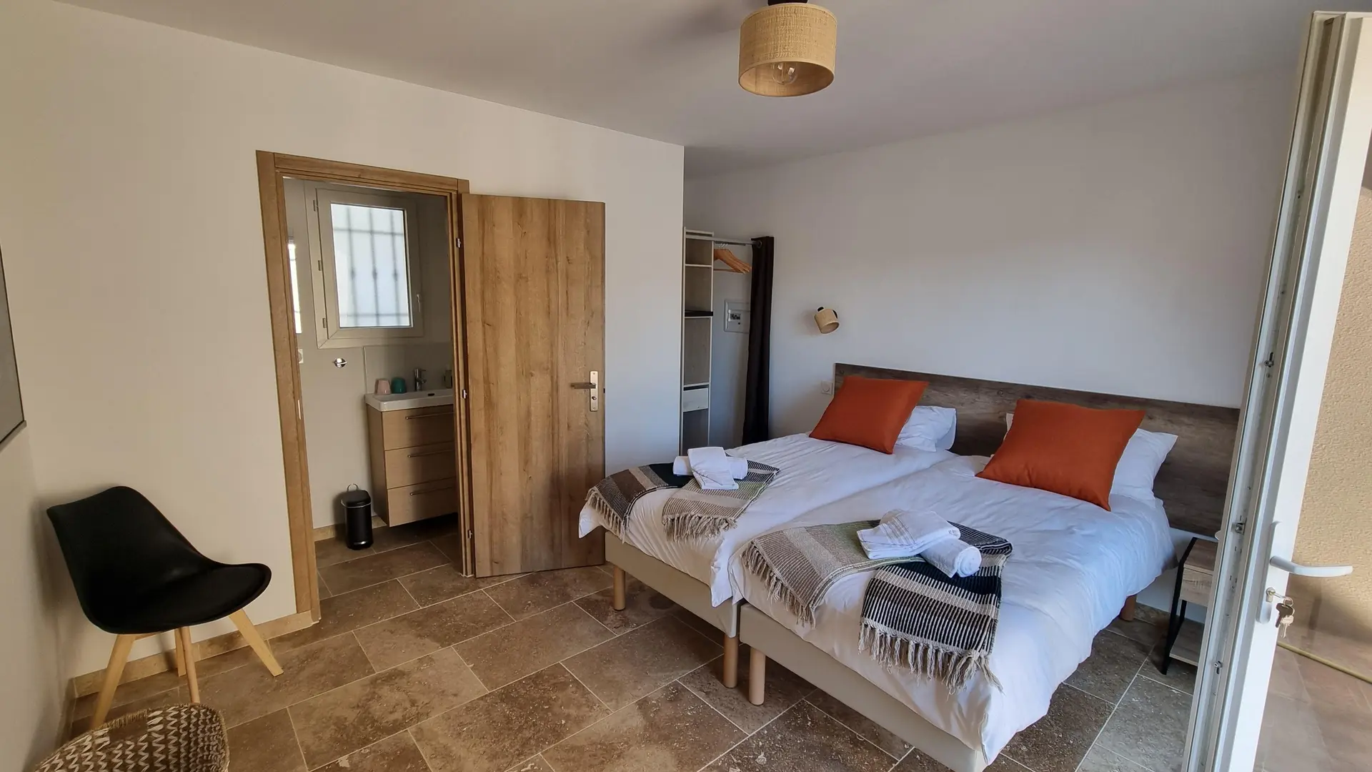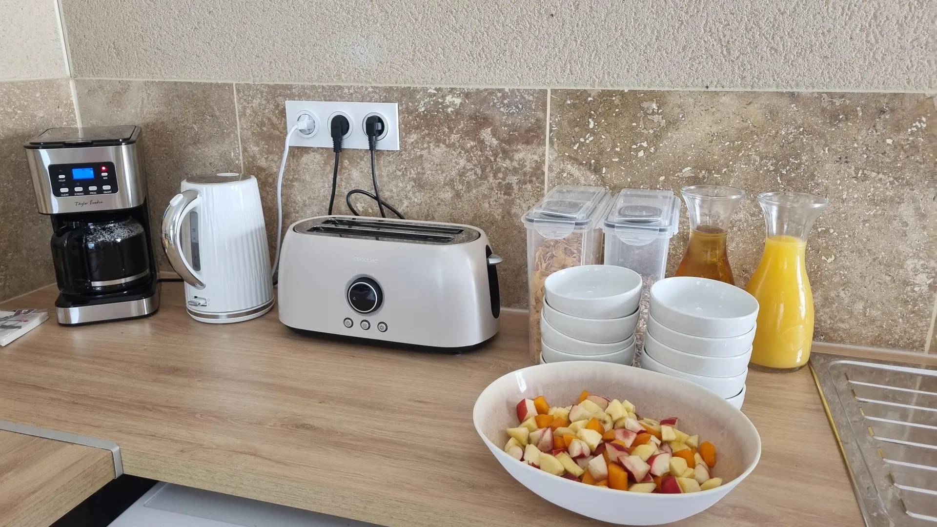 Shared kitchen is available (fridge, microwave, cooking appliance,...) as well as an outside plancha.