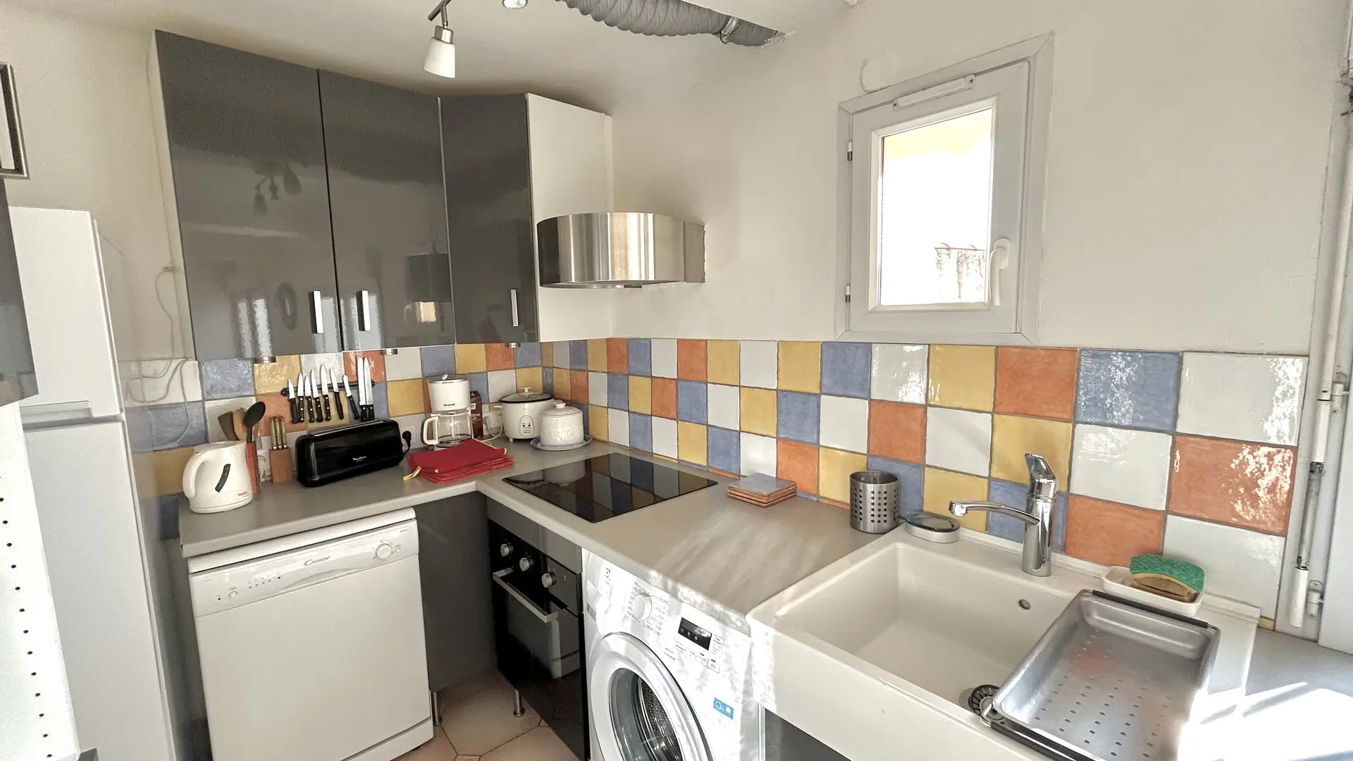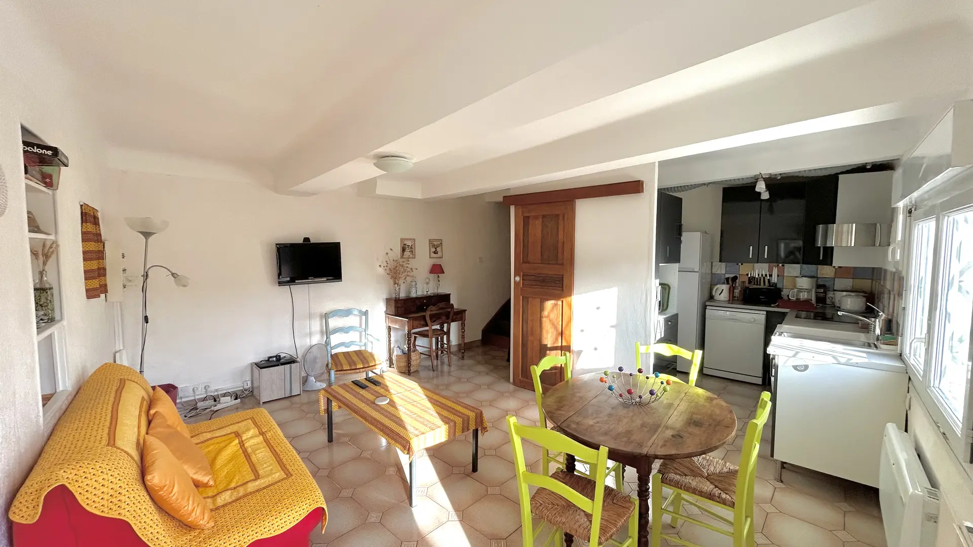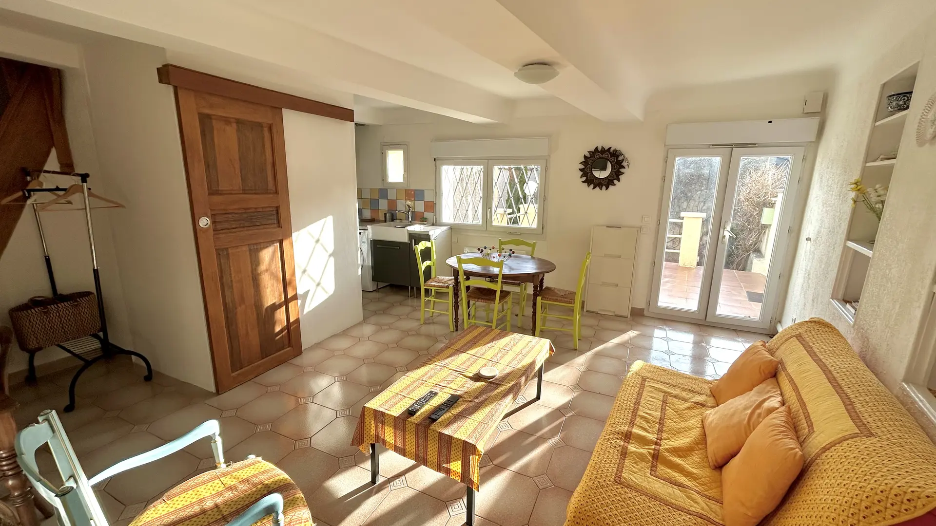 Very pretty, south-facing, fully renovated village house on 2 levels at the foot of the Château des Templiers. Very well equipped (new, high-quality equipment).