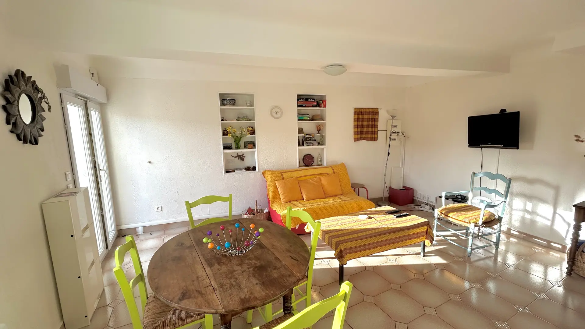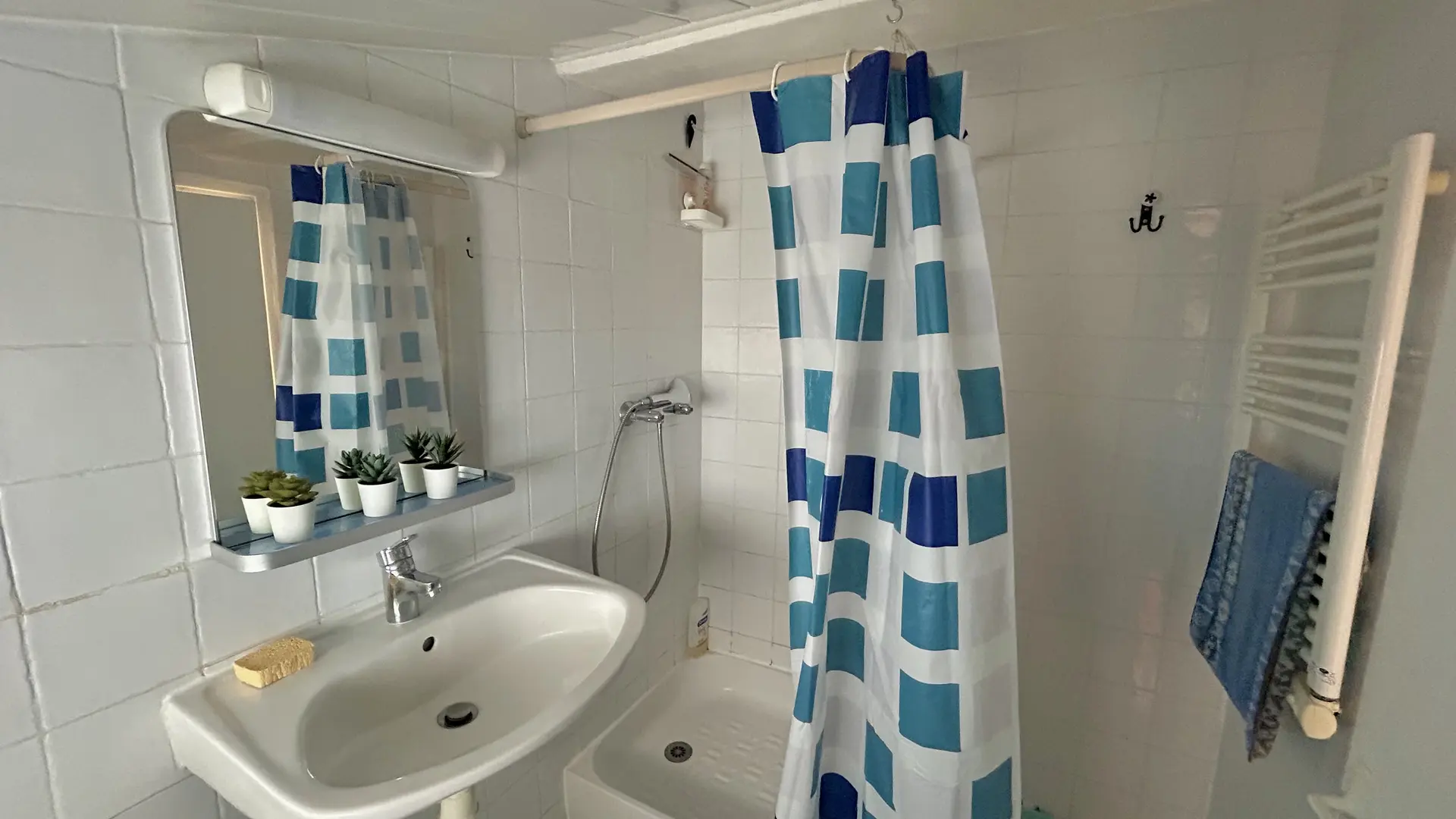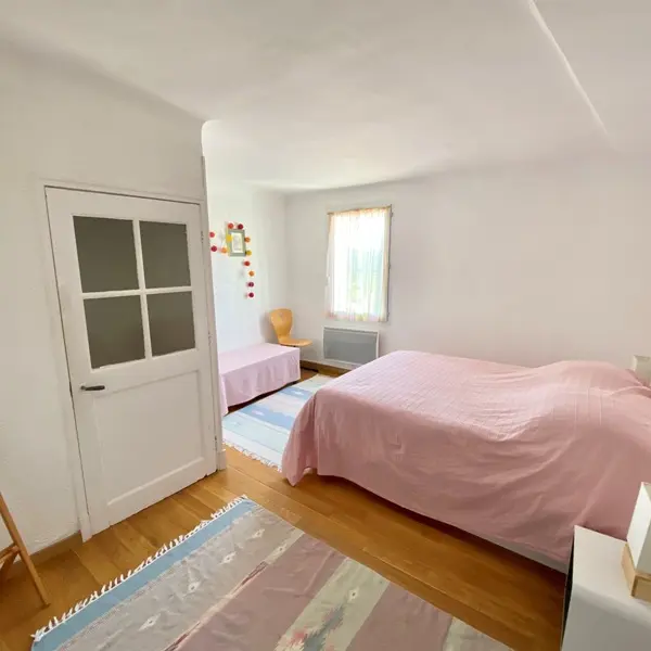 Public parking lot 80 m away. Washing machine, dishwasher, TV, real stove with vitro hob, microwave, fridge with freezer compartment. Must pass through one room before entering the other. No pets allowed. Pretty garden and terrace with garden furniture.