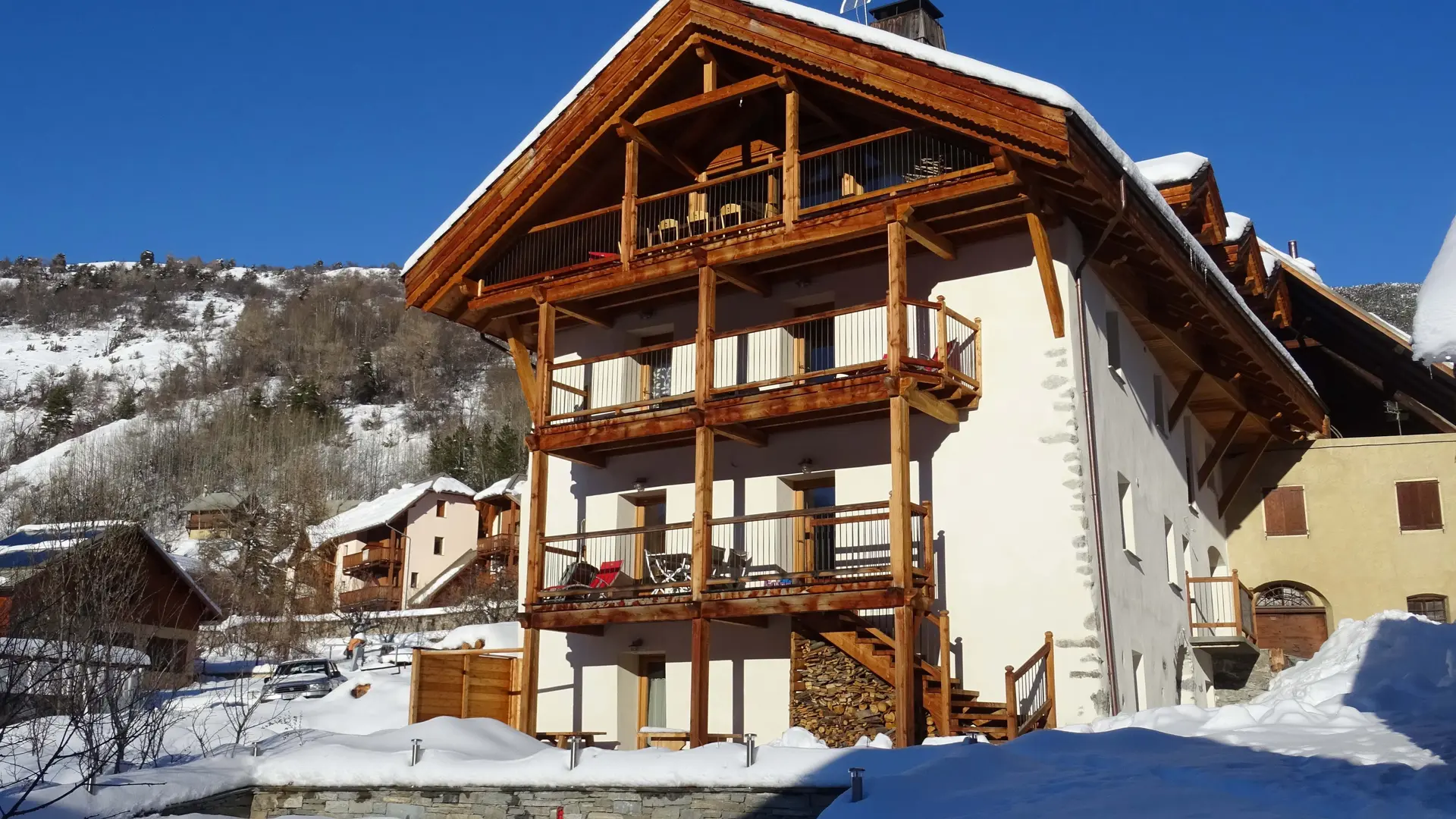 Located in the Serre Chevalier valley, in Villard Laté (commune of Saint Chaffrey), on the 1st floor of a 3-storey village house, very nice flat, Lauze, T2 for 2 to 4 people.