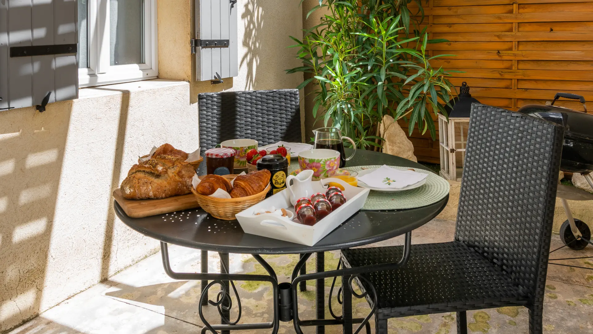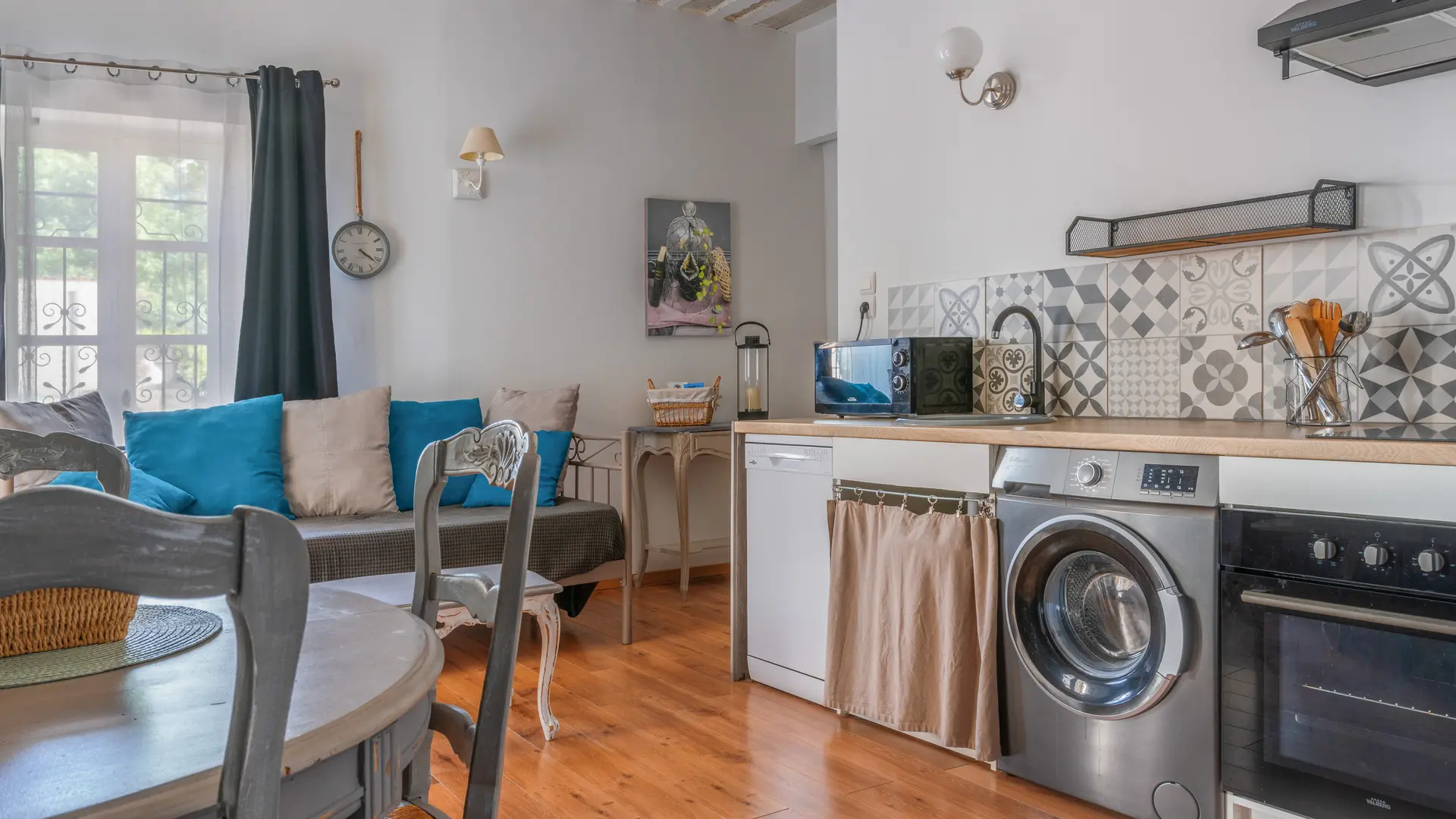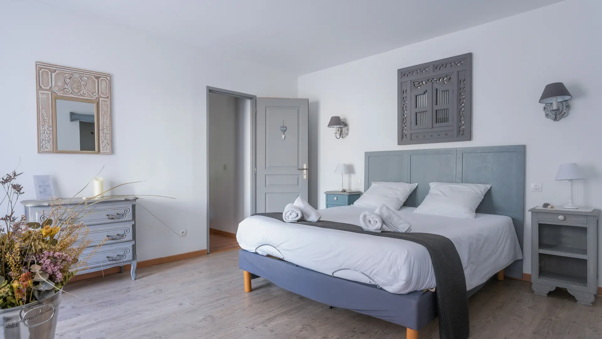 The gîte comprises a living room with a 1-person sofa bed, a shower room with walk-in shower and separate toilet. The bedroom has a queen-size bed. Books, board games and outdoor games available.