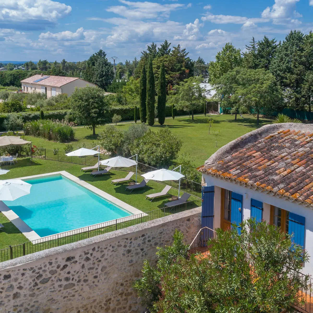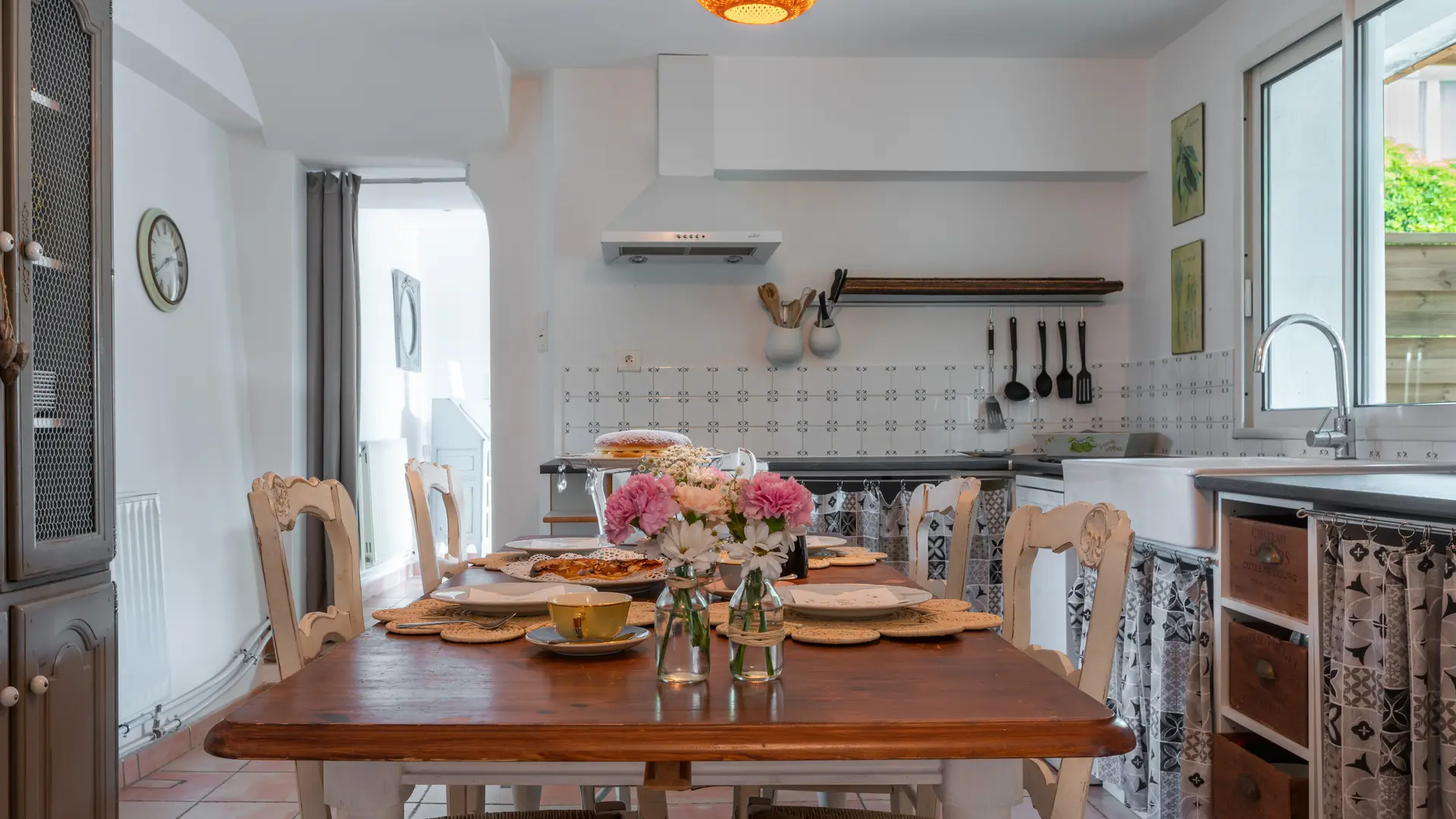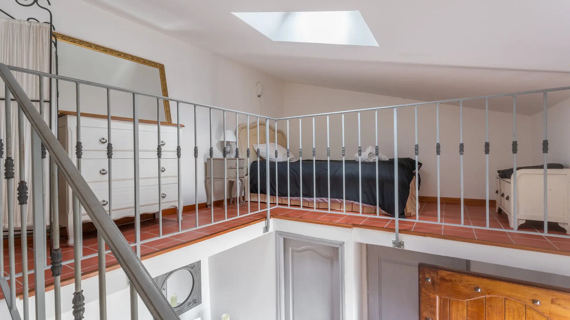 Bright, warm south-facing gîte with large balcony overlooking courtyard and private terrace with garden furniture on ground floor.