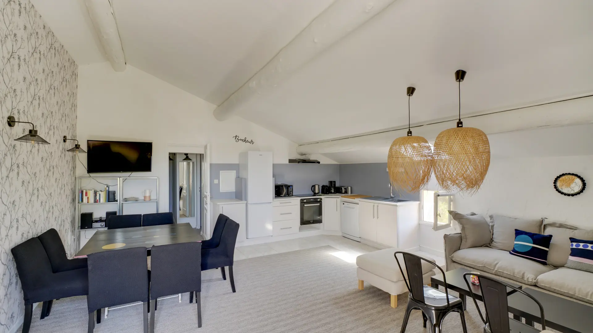 La Maison du Bonheur is a 110 m² apartment, renovated in a house spirit, with a balcony located on the 2nd floor of the Mas with independent access from the patio.