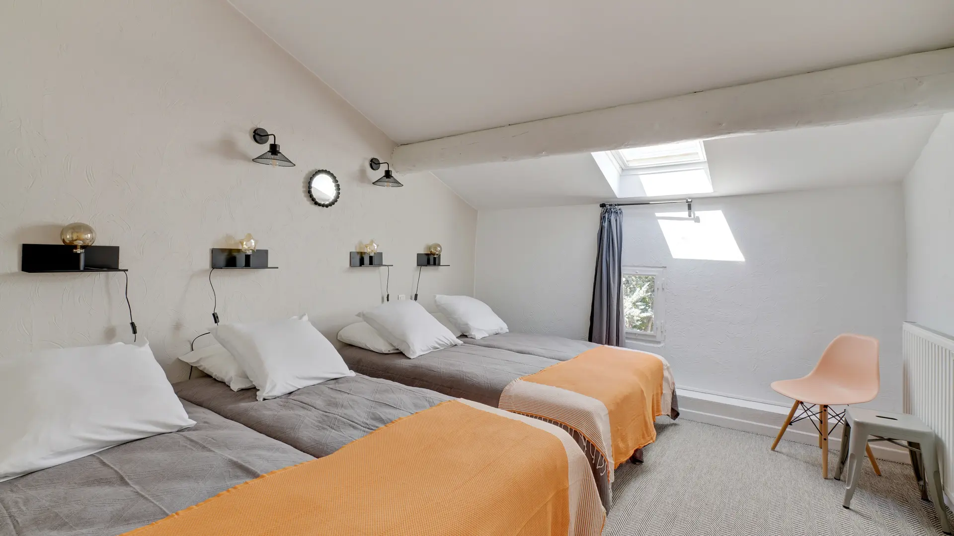 The Maison du Bonheur is connected by a staircase (with doors) to the Maison des Souvenirs to total 15 beds if needed. And by a door to the Petite Maison located on the same floor. The 3 Houses = 19 beds.