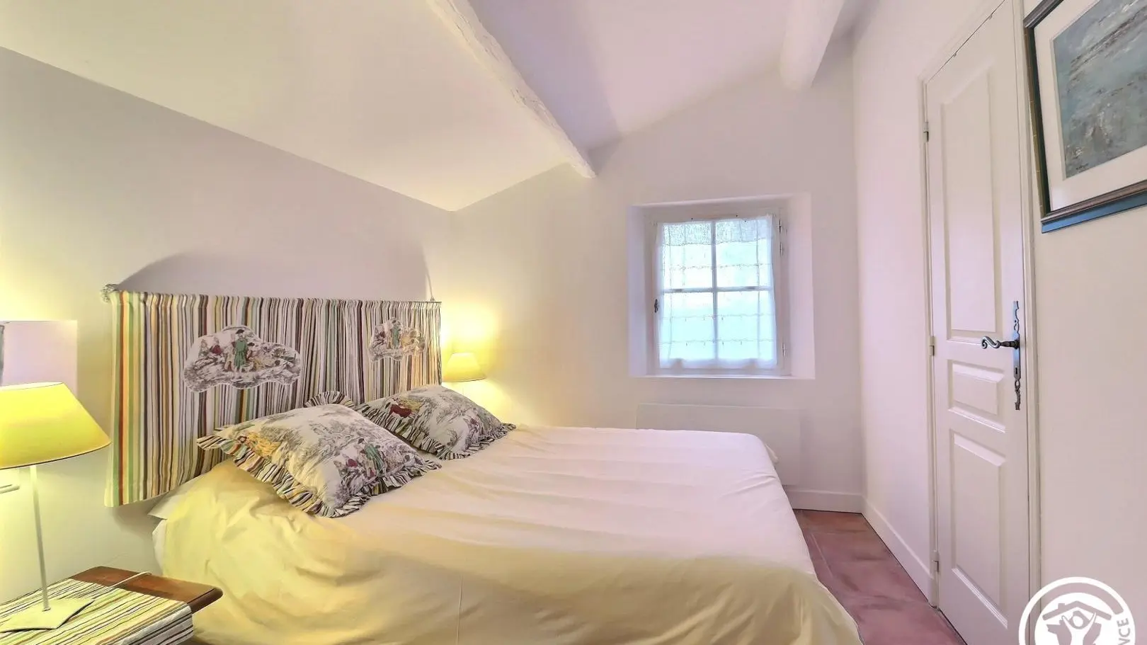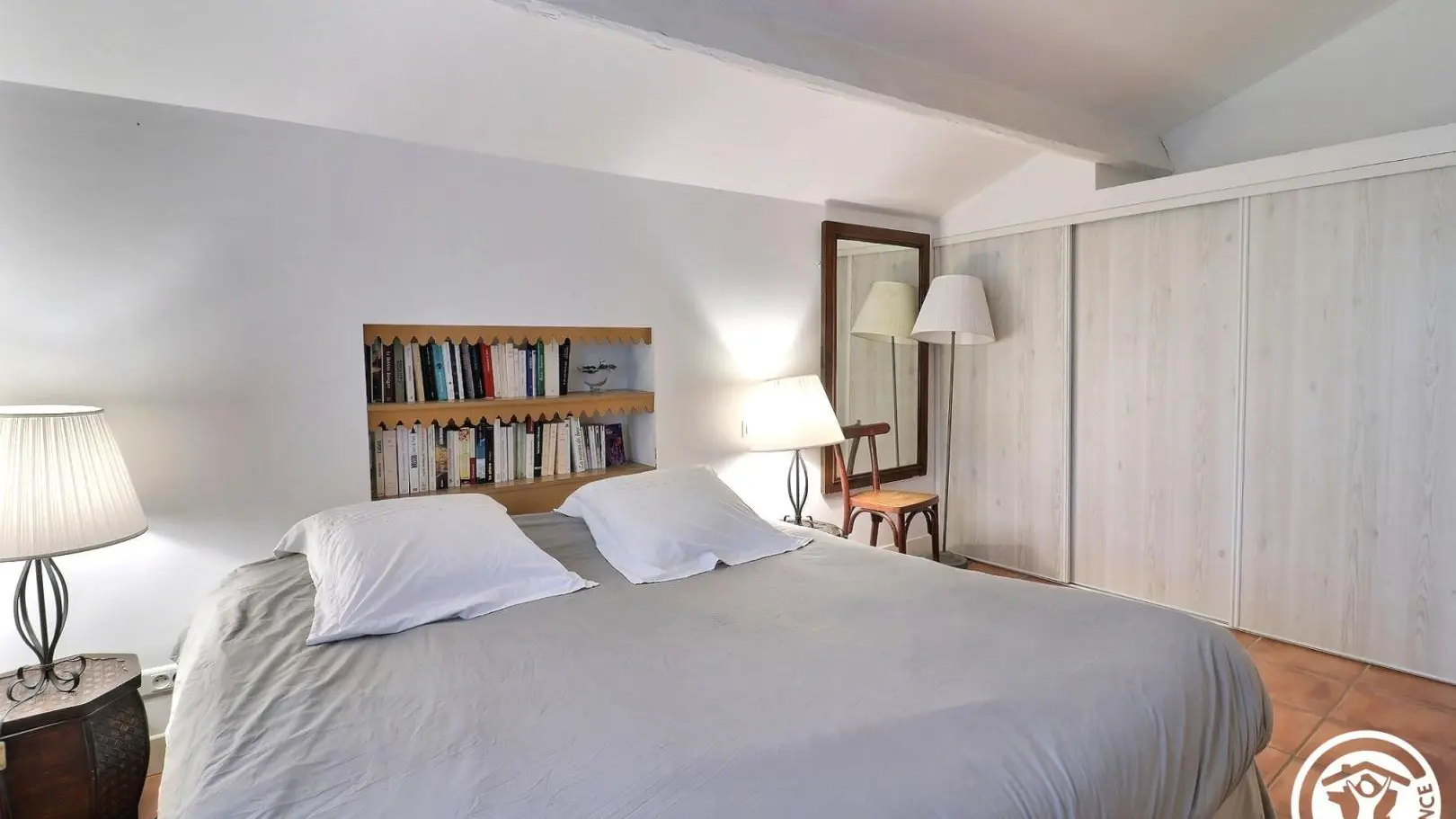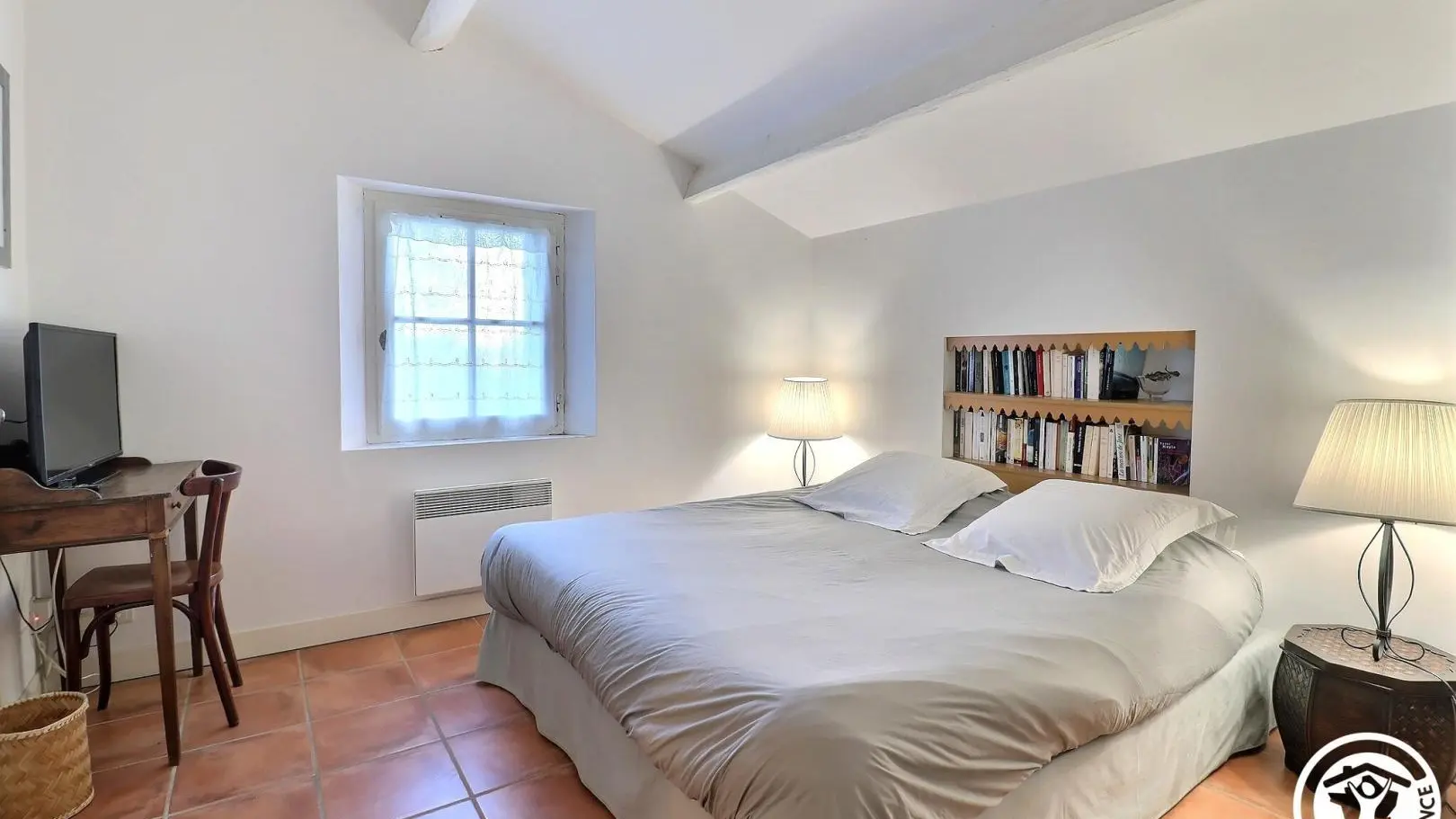 Very beautiful Provencal villa on 1.3 hectares, including 6,000 m² of hills, with direct access to GR6. 3,200 m² of private lawns with football goals. 1,000 m² shared with owner. Four reserved parking spots on the enclosed property. Private swimming pool (7x3,5m) open from may to september. Ground floor: kitchen/living room/lounge. 1 bedroom with 2 single beds (90x200). private shower. WC. Upper floor : 1 bedroom with a double bed (180x200), shower/WC. Reversible air conditioning, electric heating. Private terrace (40 m²), garden furniture. Shaded ground area (600 m²), garden furniture. Barbecue. Wi-Fi.