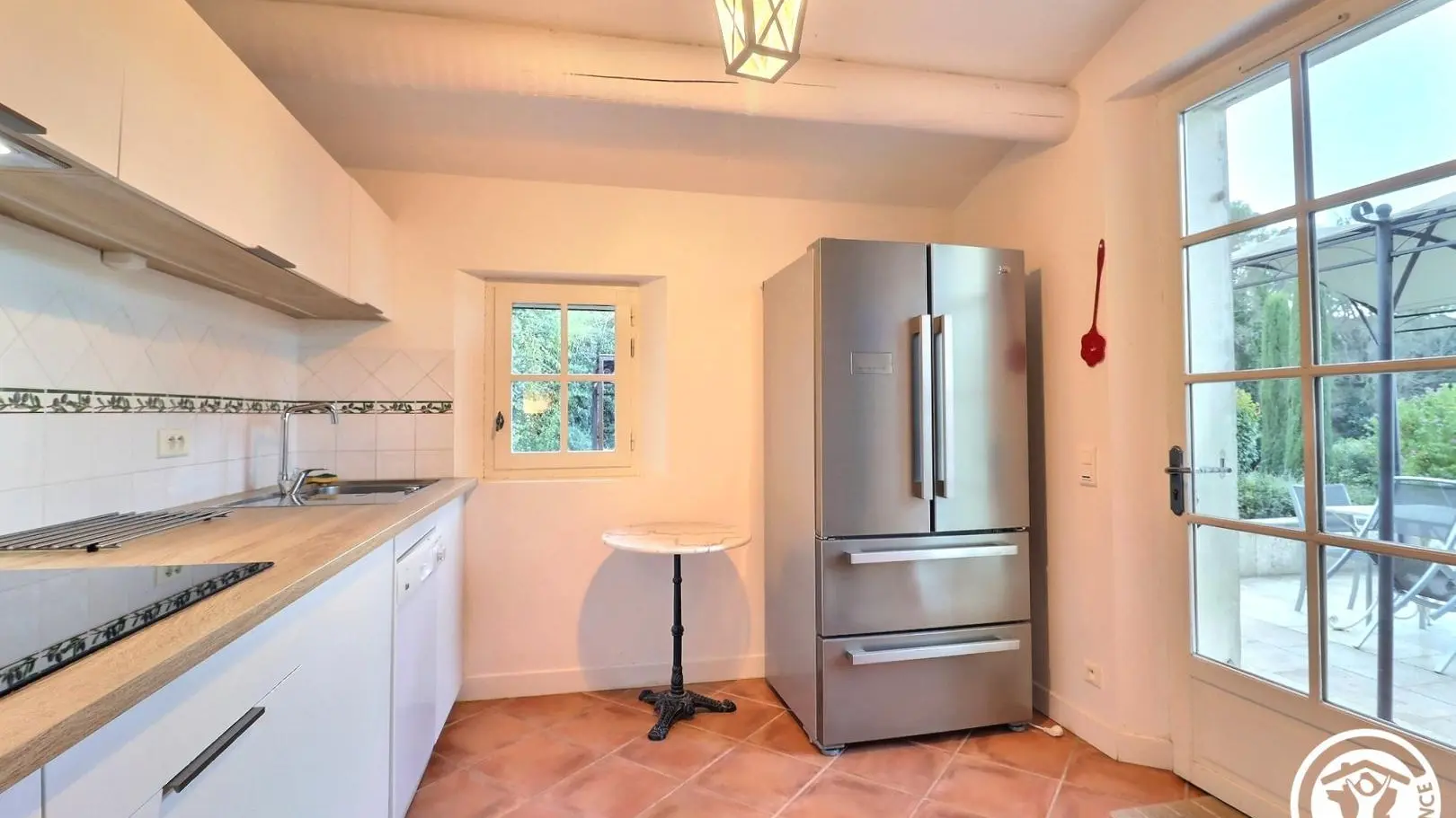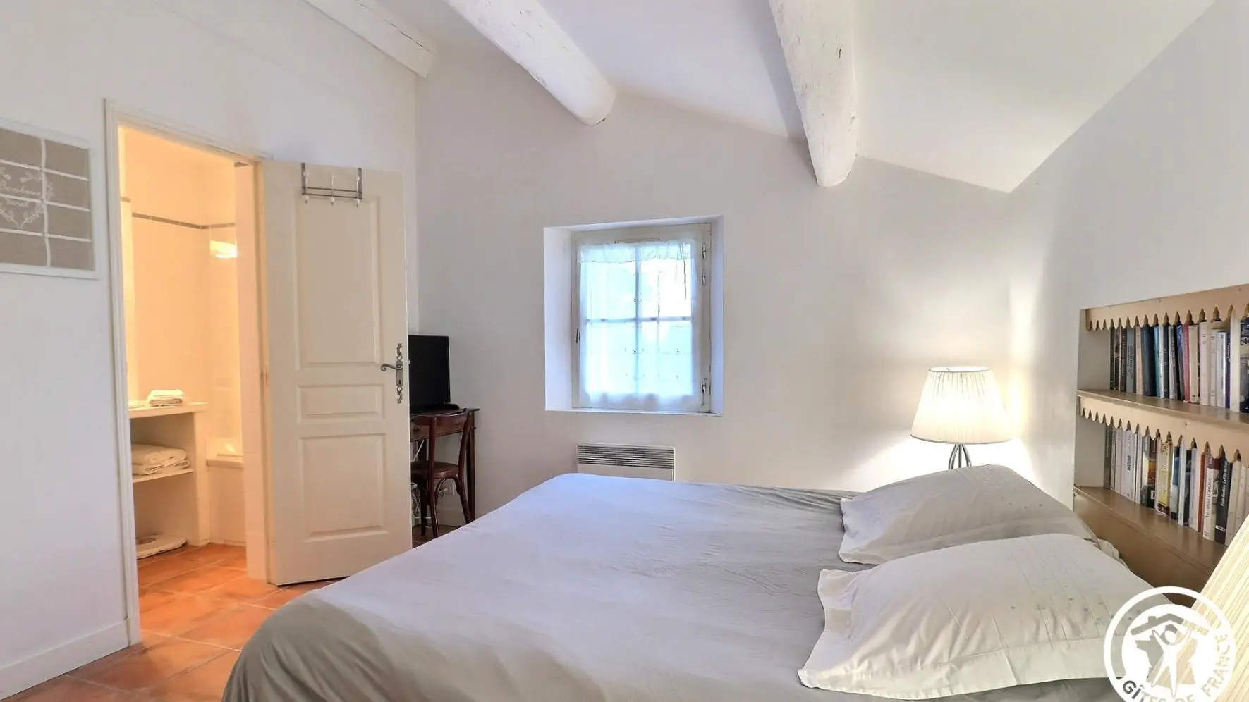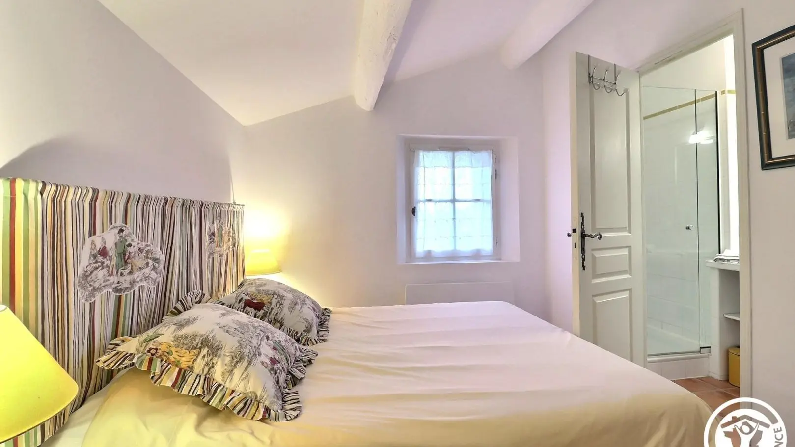 Very beautiful Provencal villa on 1.3 hectares, including 6,000 m² of hills, with direct access to GR6. 3,200 m² of private lawns with football goals. 1,000 m² shared with owner. Four reserved parking spots on the enclosed property. Private swimming pool (7x3,5m) open from may to september. Ground floor: kitchen/living room/lounge. 1 bedroom with 2 single beds (90x200). private shower. WC. Upper floor : 1 bedroom with a double bed (180x200), shower/WC. Reversible air conditioning, electric heating. Private terrace (40 m²), garden furniture. Shaded ground area (600 m²), garden furniture. Barbecue. Wi-Fi.