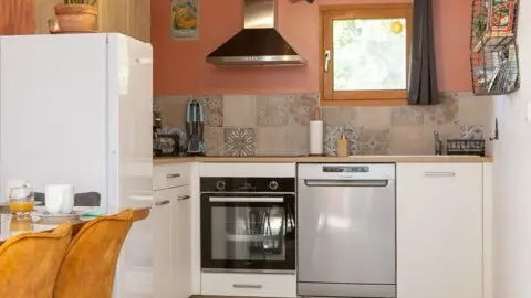 Modern, fully equipped kitchen: oven, induction hob, dishwasher, Delonghi coffee machine, 4L air fryer, complete dishware — everything you need to cook just like at home.