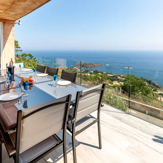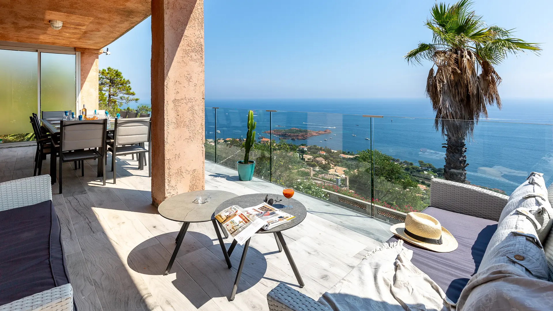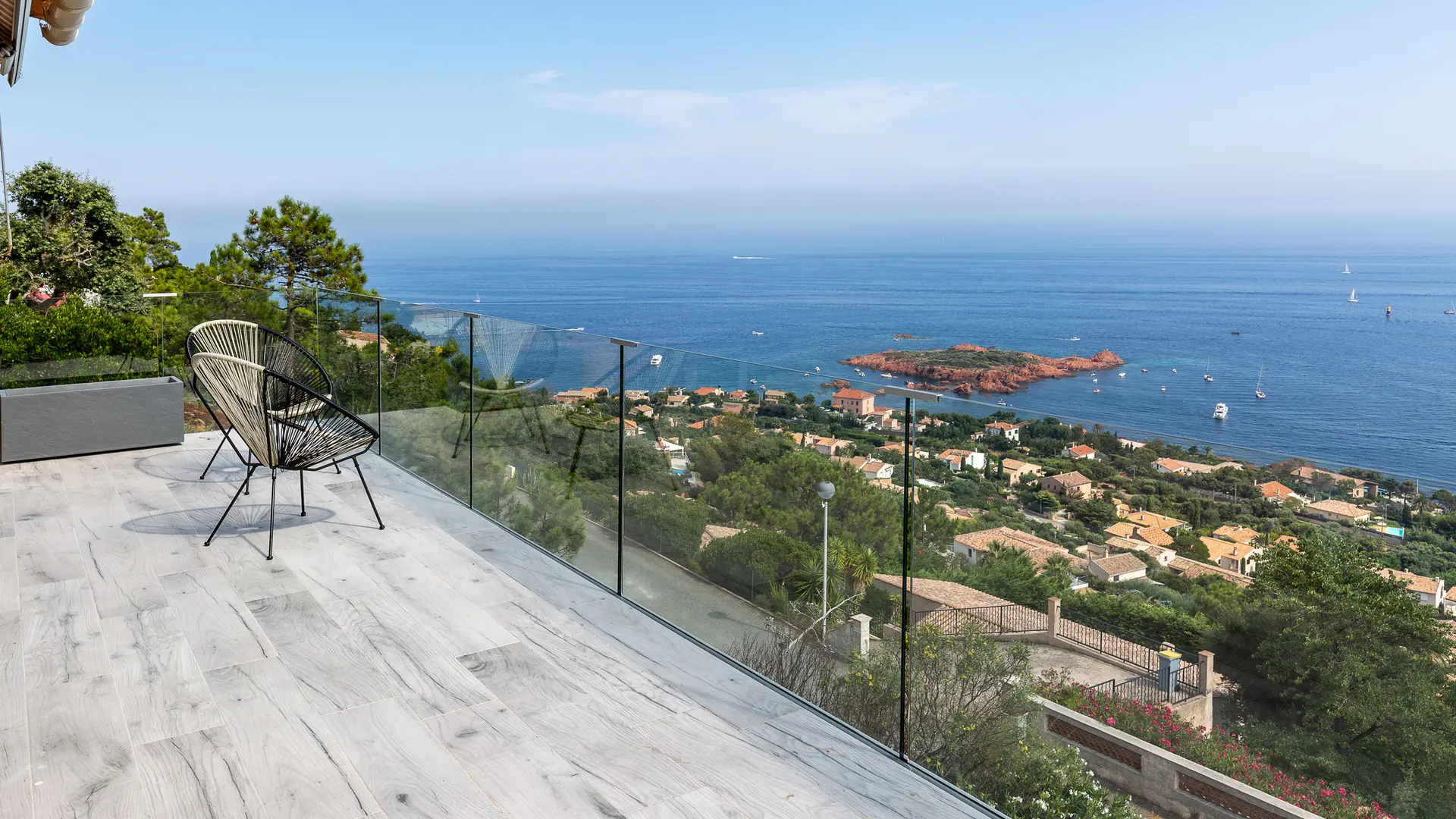 Superb terraces with sea views. The house is fully air-conditioned. Numerous golf courses nearby (Estérel, Valescure...).